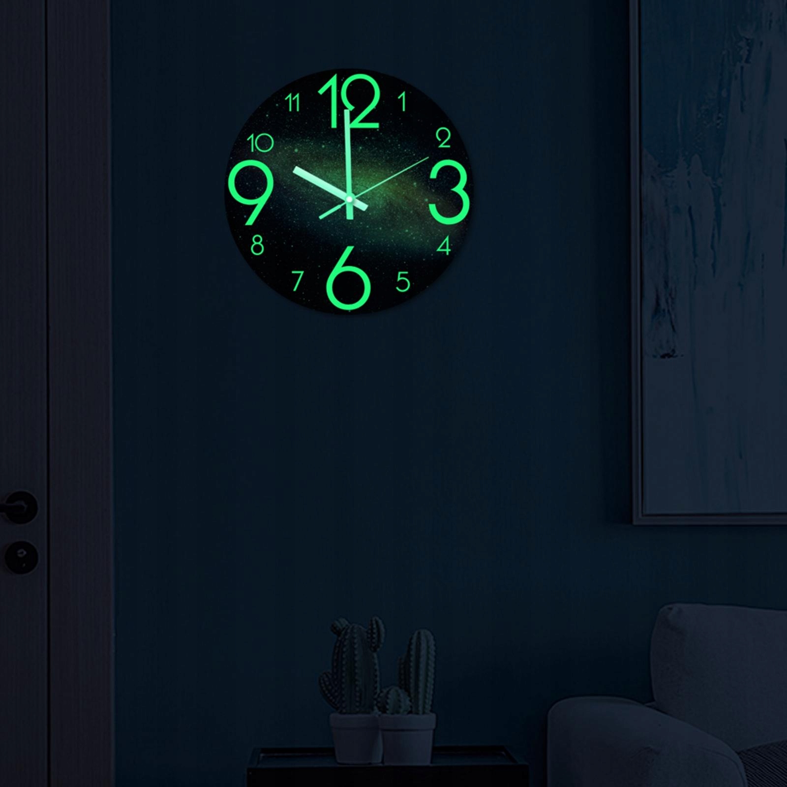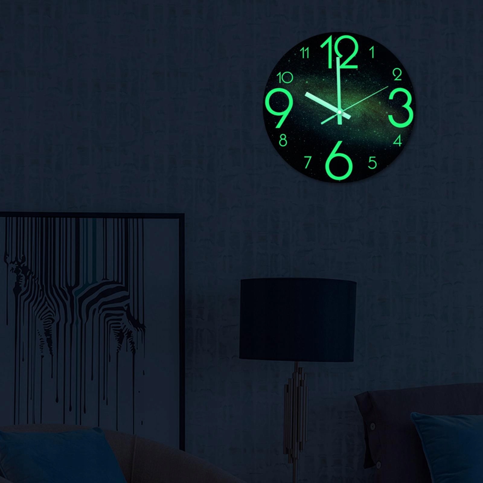 Светится в темноте - Цифры и стрелки имеют функцию ночной подсветки. Он требует от вас поглощать достаточное количество световой энергии в течение дня. Ночью он излучается флуоресцентно, поэтому вы можете видеть свет ночью или в темноте. (Советы: настенные часы будут светиться в темноте около 5-6 часов, это зависит от света, поглощаемого в течение дня)