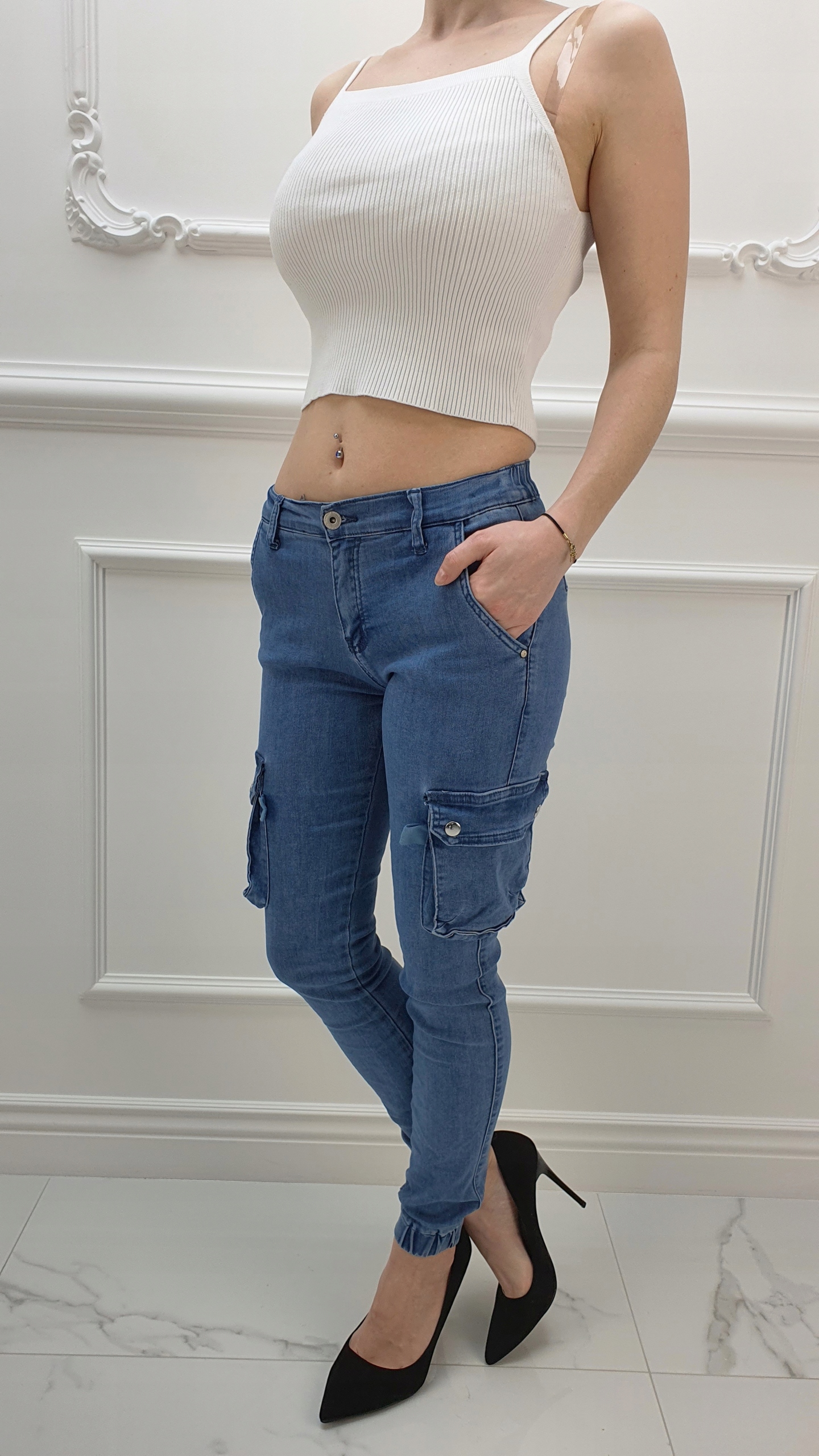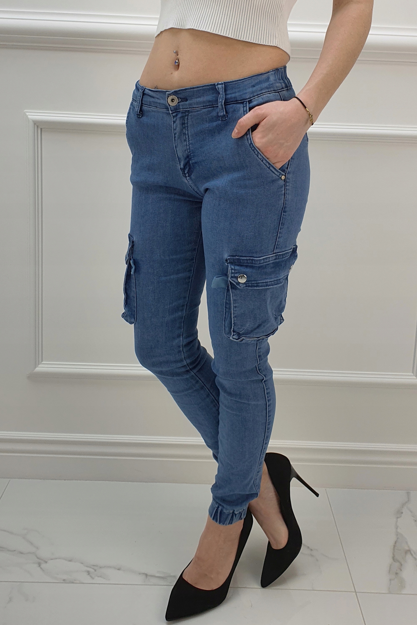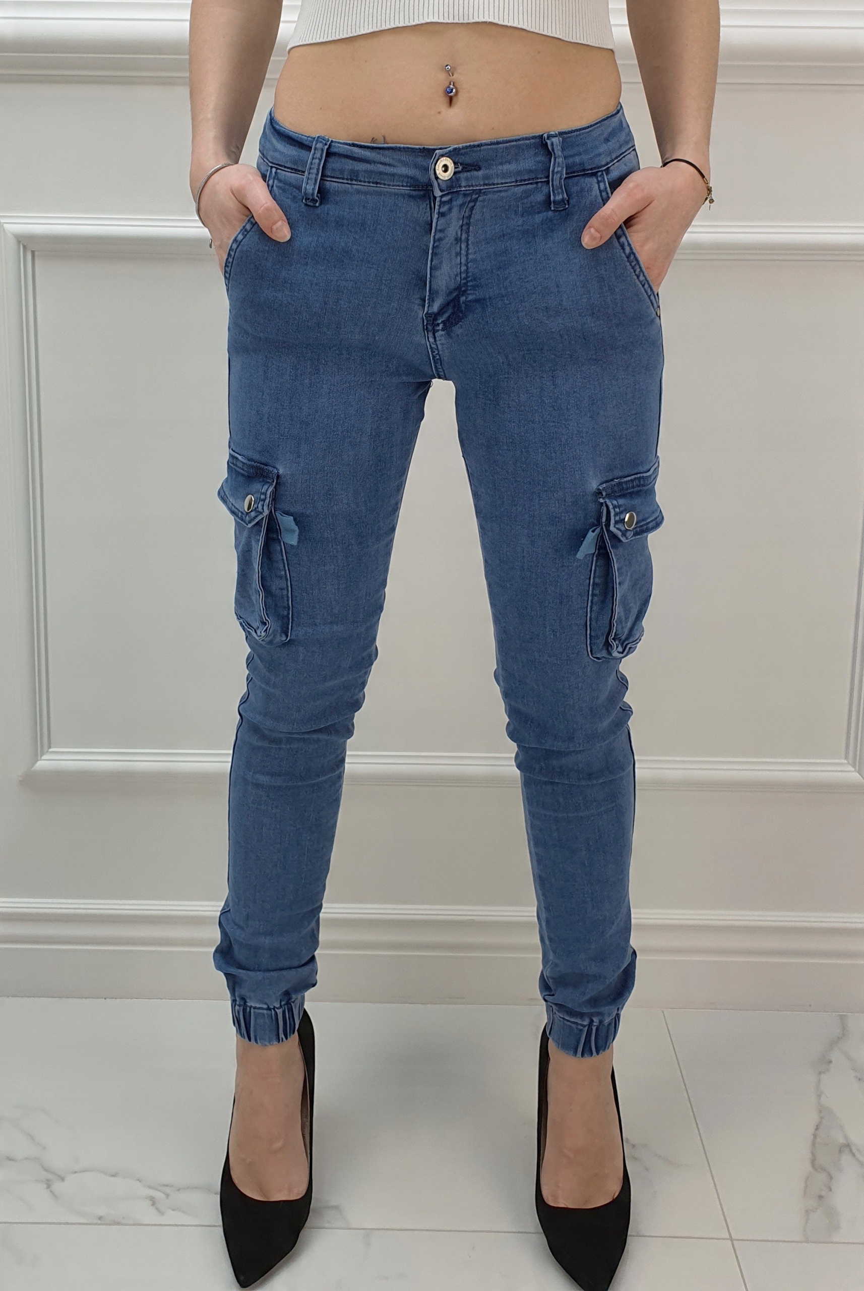 Джинсовые брюки Армейские брюки отлично подходят для спортивной обуви, но также идеальны в сочетании с ней. на высоком каблуке, благодаря своей универсальности, подходят практически к любому стилю. Гибкий материал подчеркивает женскую фигуру. Брюки приталенные и тянутся. Подчеркните свои женственные формы! Сделайте свой повседневный образ уникальным. Брюки имеют карманы с обеих сторон.