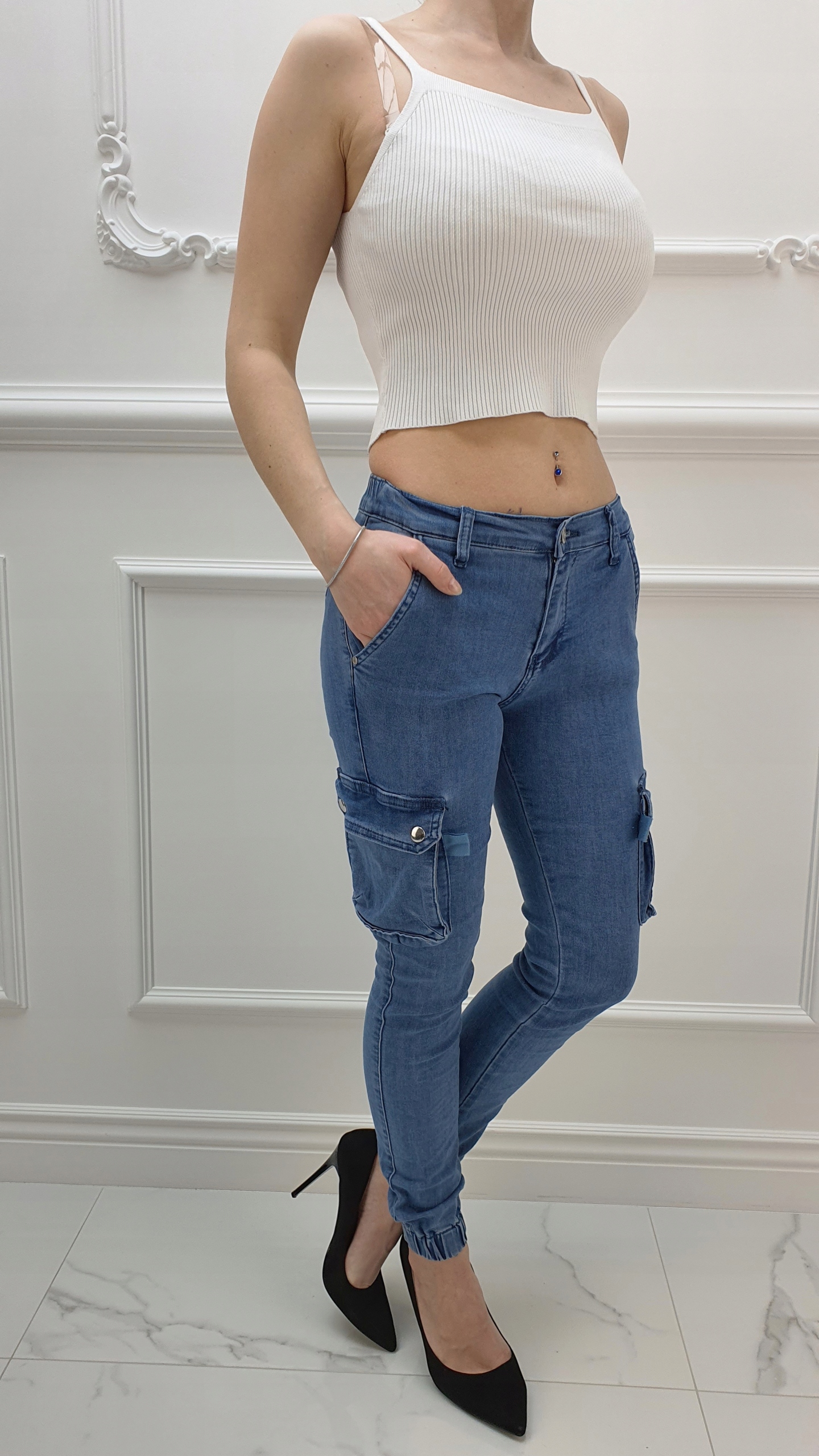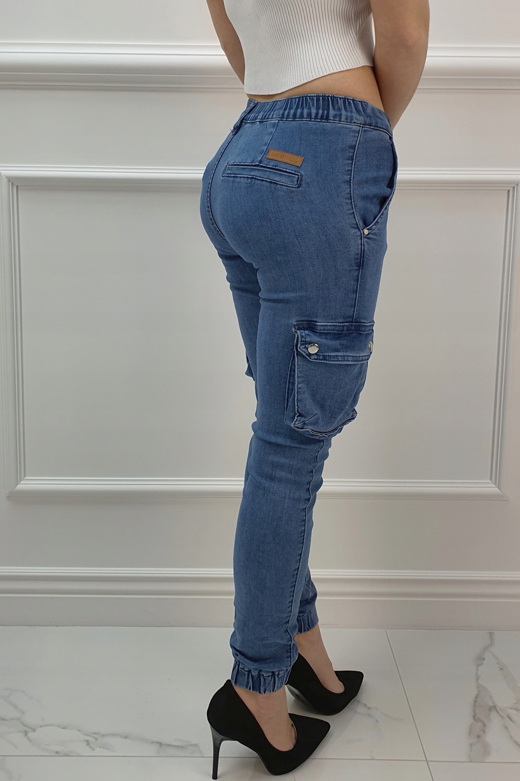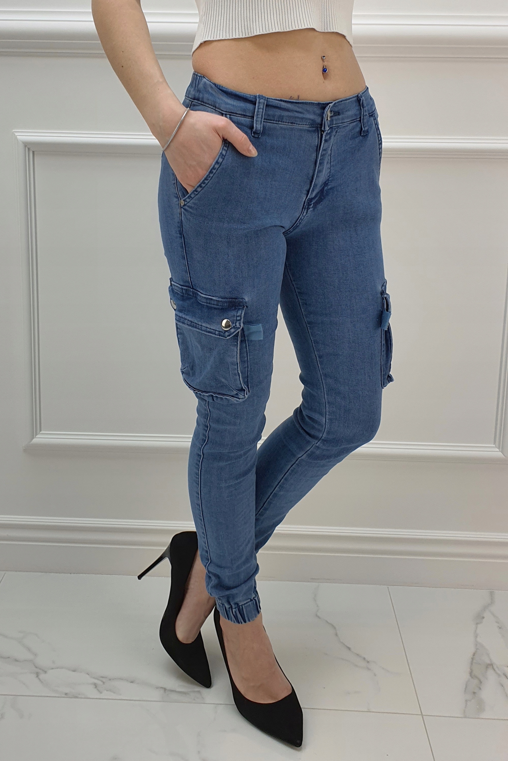 Джинсовые брюки Армейские брюки отлично подходят для спортивной обуви, но также идеальны в сочетании с ней. на высоком каблуке, благодаря своей универсальности, подходят практически к любому стилю. Гибкий материал подчеркивает женскую фигуру. Брюки приталенные и тянутся. Подчеркните свои женственные формы! Сделайте свой повседневный образ уникальным. Брюки имеют карманы с обеих сторон.