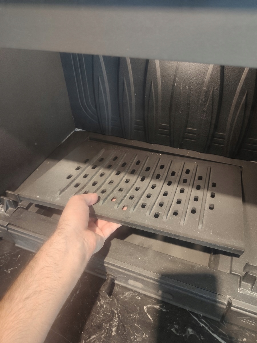 Зольный ящик/контейнер для сбора остатков сгоревшей древесины и подвижная решетка, облегчающая удаление золы.