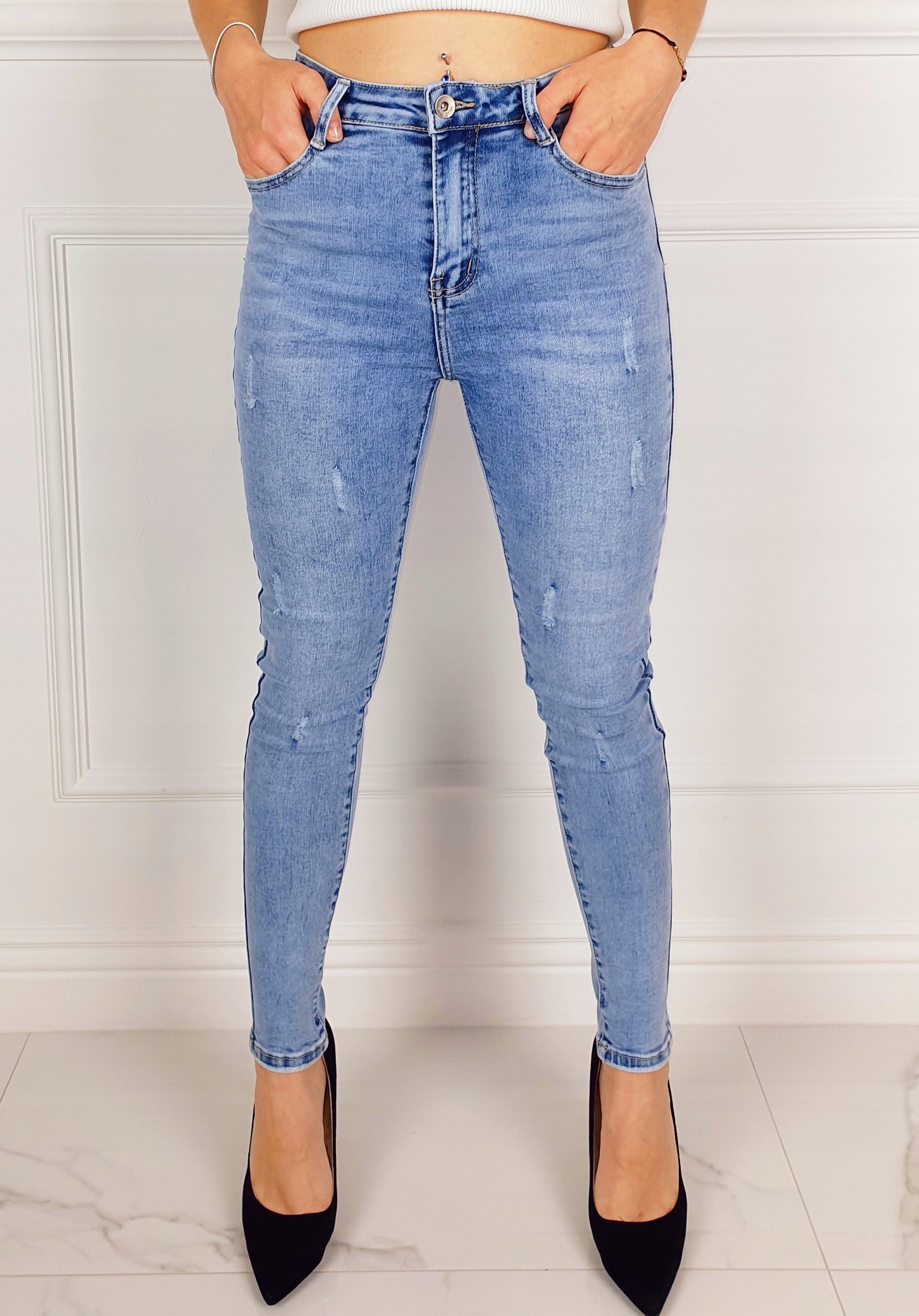 Слегка поношенные джинсовые брюки, средняя талия. Отлично подходят для спортивной обуви, но идеальны. также хорошо сочетаются с обувью на высоком каблуке, поскольку благодаря своей универсальности они подходят практически к любому стилю. Гибкий материал подчеркивает женскую фигуру. Брюки приталенные и тянутся. Подчеркните свои женственные формы! Сделайте свой повседневный образ уникальным. Брюки имеют карманы с обеих сторон.