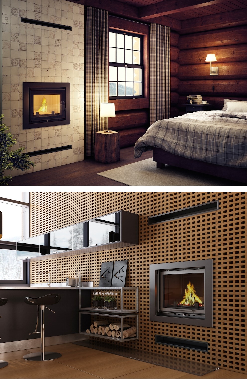Примеры обустройства камина с использованием люфтовых решеток