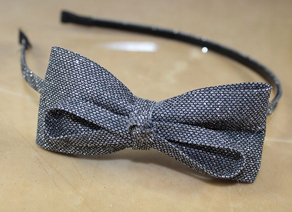 Узкая металлическая повязка на голову с двойным бантом - большим простым классическим бантом и узким верхним, образующим символ бесконечности.