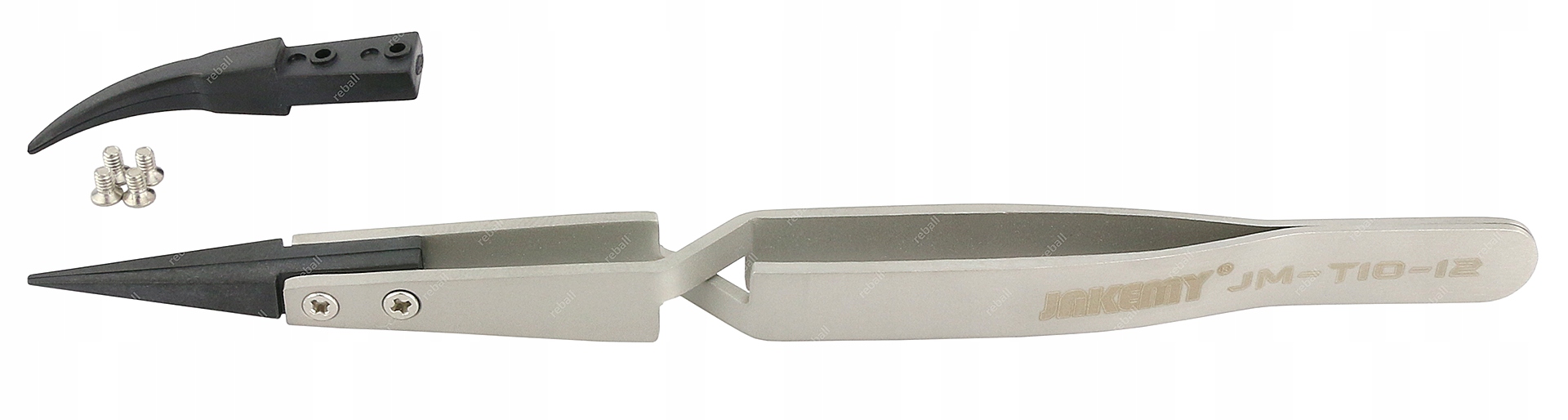 Прецизионный обратный пинцет JAKEMY JM-T10-12 включает в себя два антистатических кончика из термостойкого углеродного волокна различной формы. :