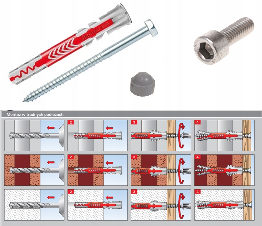 - 24 винта + дюбеля Fischer Duopower для крепления к стене