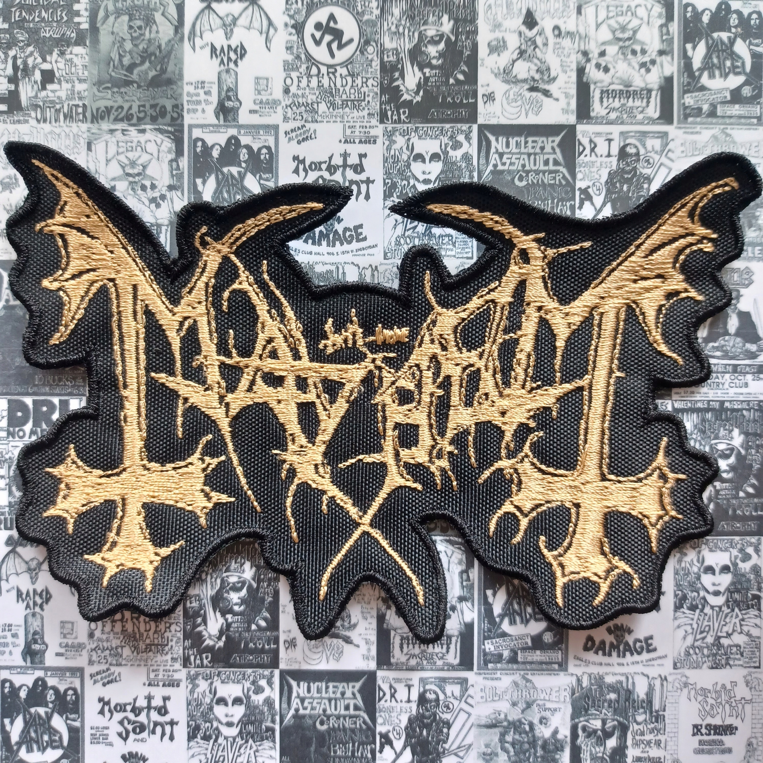 \ W/ - Haft Patchem - Mayhem - Beige Logo - 7 x 12 см - черный металл