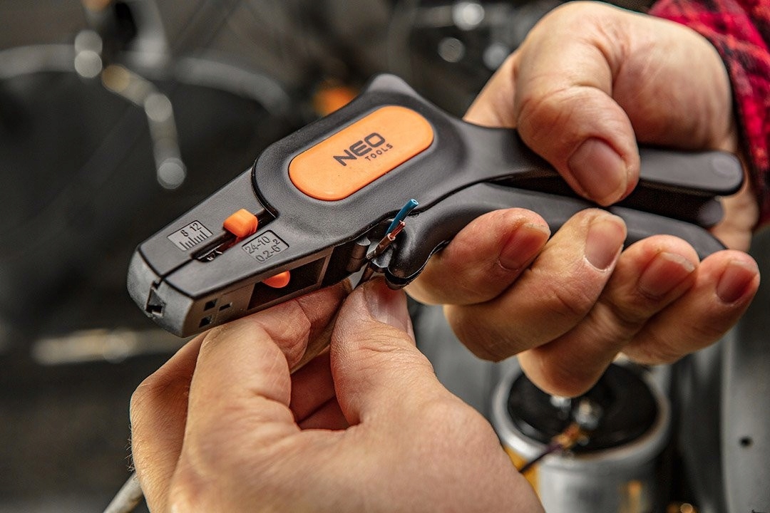 Автоматический нео изоляционный съемник (ссылка 01-519) для кабелей с поперечным сечением от 0,5 мм до 6 мм2 (24-10 AWG). Он имеет регулировку длины изоляции от 5 до 12 мм. Прочный кузов из стекловолокна, нанесенный нейлоном, с заблокированным заблокированием. Челюсти, сделанные из высококачественной стали SK5, гарантируют долговечность и резкость ошеломления. Оснащен кабельным резаком с максимум 2 мм2 поперечного сечения. Neo бренд оправдывает ожидания профессионалов