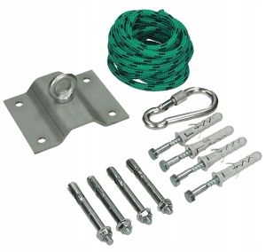 Толстая веревка с потолочным держателем, монтажной проушиной, карабином и полным набором анкеров для крепления, в частности, гамак, качели, кокон, боксерская груша и различные виды предметов, требующих подвешивания.