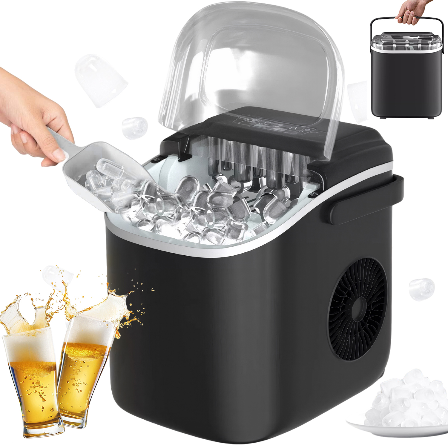 Наша маленькая миниатюрная ледяная кубика может производить 9 сферических кубиков льда всего за 6 минут. Заполните 1,2 -литровый резервуар для воды, а максимальная емкость составит 26 фунтов стерлингов за 24 часа. Попрощайтесь с долгим ожиданием и наслаждайтесь постоянным доступом к льду в любое время. Через прозрачное окно вы можете наблюдать, как образуется лед. Небольшие кубики льда могут охлаждать морепродукты и пиво, благодаря которого они сохраняют свою свежесть и холод. Большие кубики льда работают лучше в напитках, потому что они быстро остывают Наши ледяные машины имеют компактную конструкцию и ручку, которая облегчает транспорт. Вы можете использовать миниатюрную портативную ледяную машину повсюду, она идеально подходит на кухне, офисе, баре, кемпинге, на автодоме или на вечеринке. Прозрачная крышка позволяет вам контролировать количество кубиков льда. Датчик автоматически обнаруживает, заполнен ли кубик льда, и останавливает производство, чтобы предотвратить переполнение Индикатор будет освещаться, когда вода заканчивается или когда контейнер с льдом будет заполнен