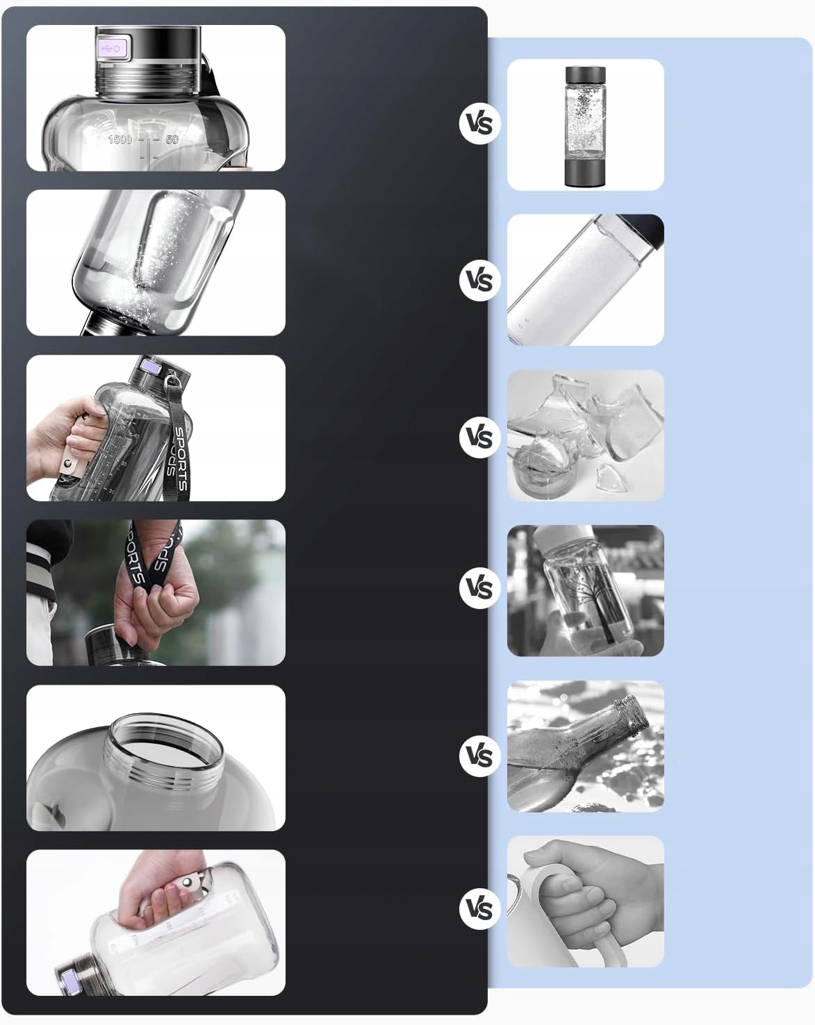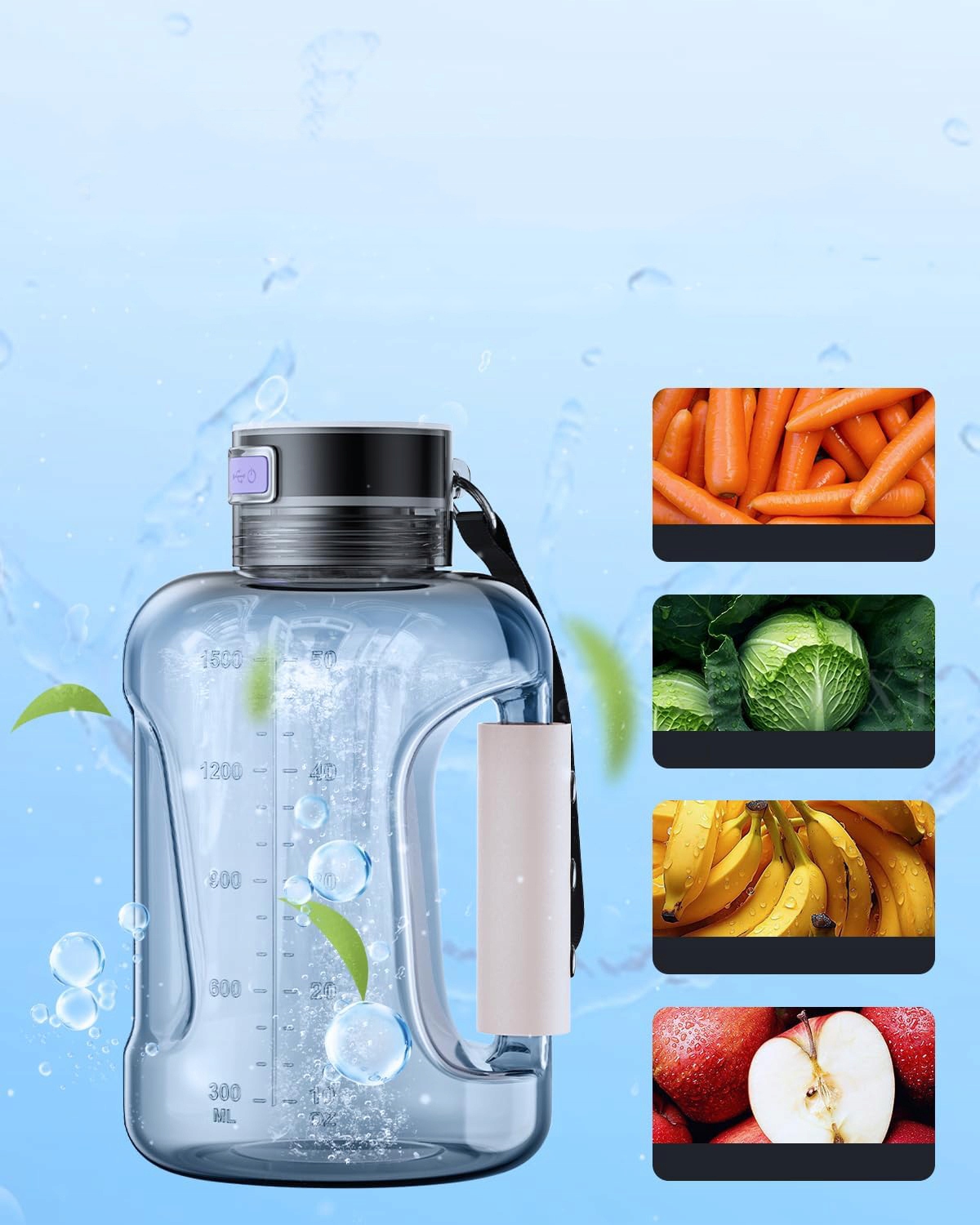 【Портативный дизайн】Портативная спортивная бутылка для воды Водородная бутылка для воды с крышкой и ручкой Powerband эргономична, ее легко пить и носить с собой. Легкий и портативный, идеально подходит для работы, спорта, походов и путешествий