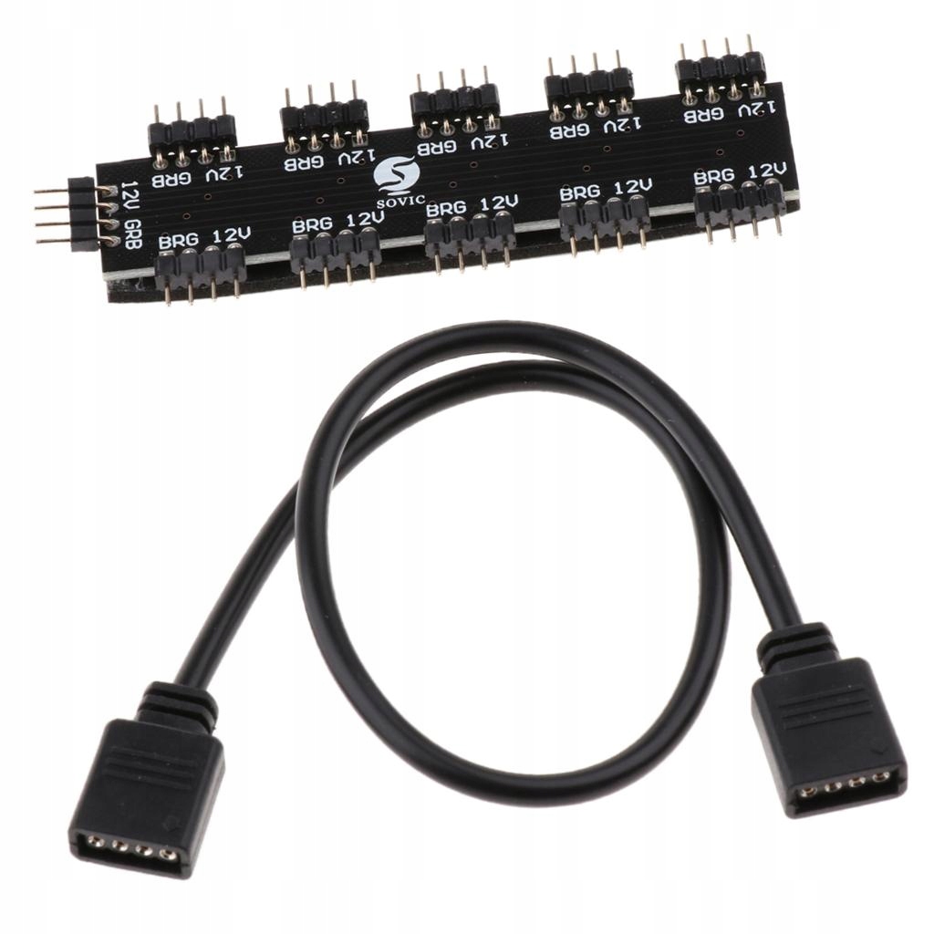 10-канальный разветвитель, расширение от 1 до 10 интерфейсов RGB, поддержка нескольких вентиляторов RGB, светодиодной подсветки и другого оборудования.