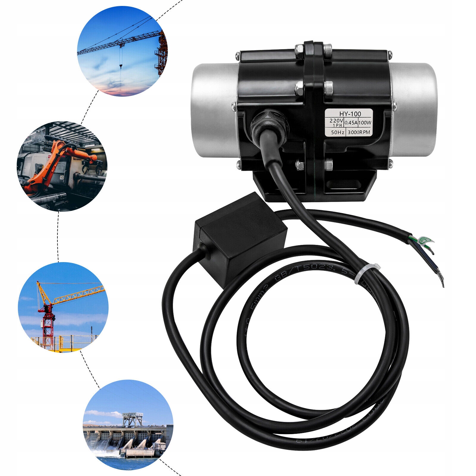 - Мощный вибрационный двигатель: он оснащен двигателем высокой мощности 100 Вт, а скорость может достигать 3600 об/мин, что может обеспечить достаточную частоту вибрации и сэкономить больше энергии. Хорошее рассеивание тепла обеспечивает стабильную и эффективную работу небольшого вибрационного двигателя.