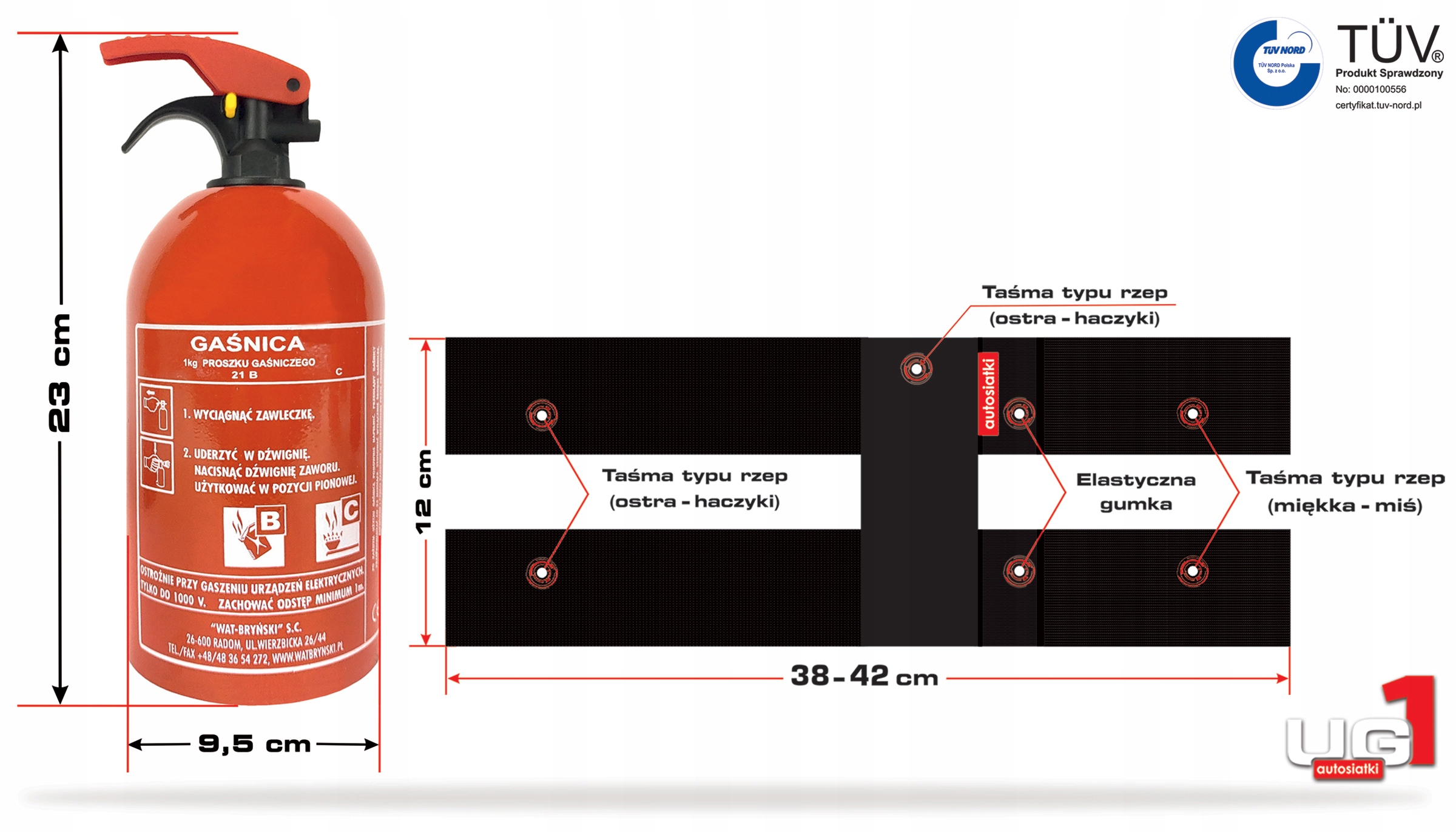 Перед покупкой убедитесь, что липучка прилегает к обивке багажника. Если липучка, например, от куртки или сумки, прилипнет к ковру, лента огнетушителя будет вести себя таким же образом.