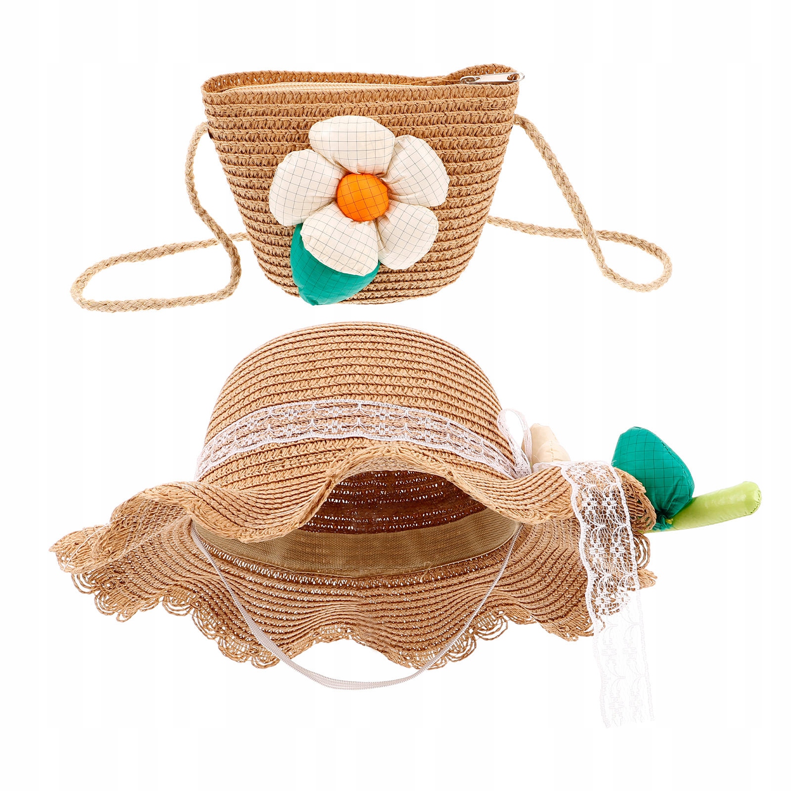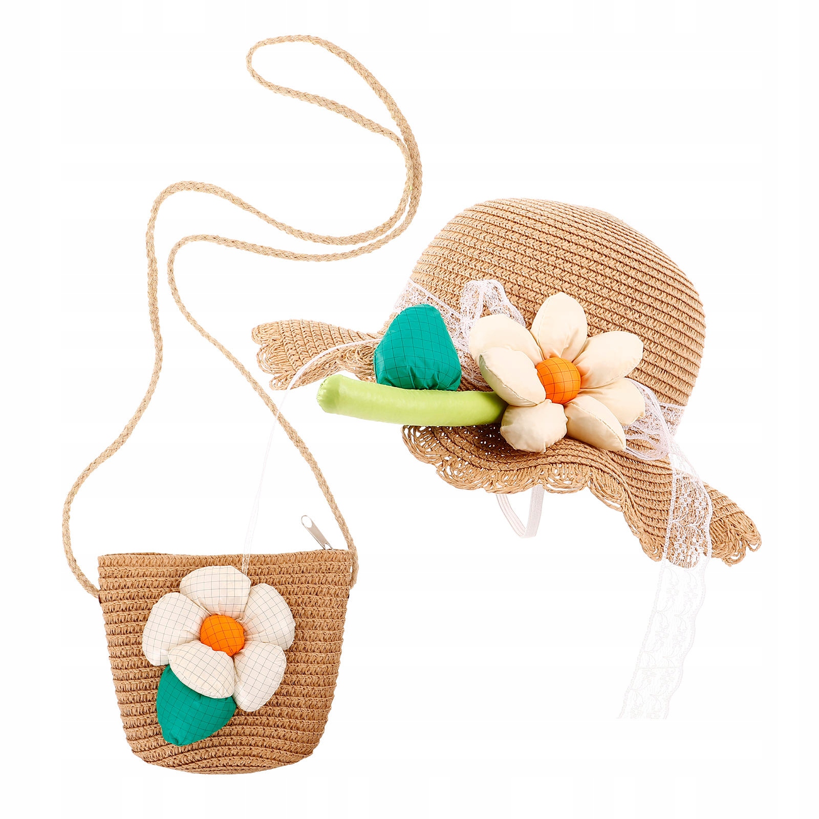 1 КОМПЛЕКТ ДЕТСКАЯ ПЛЯЖНАЯ ШЛЯПА ОТ СОЛНЦА ТКАНАЯ С ПЛЯЖНОЙ СУМКОЙ