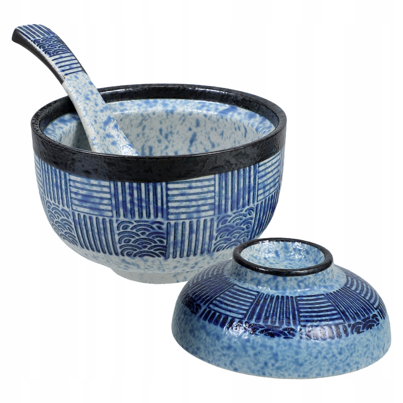 1 КОМПЛЕКТ ЯПОНСКОЙ КЕРАМИЧЕСКОЙ ЧАШКИ С КРЫШКОЙ ДЛЯ СУПА И РИСА