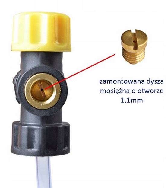 Аппликатор для пены имеет регулируемый угол струи воды с помощью пены и количества химического введения. Он крепится к пистолету, благодаря чему мы обходим внутреннюю циркуляцию в моечной машине и агрессивные химикаты не попадают в контакт с компонентами стиральной машины, исключая угрозу повреждения, например, головки насоса.