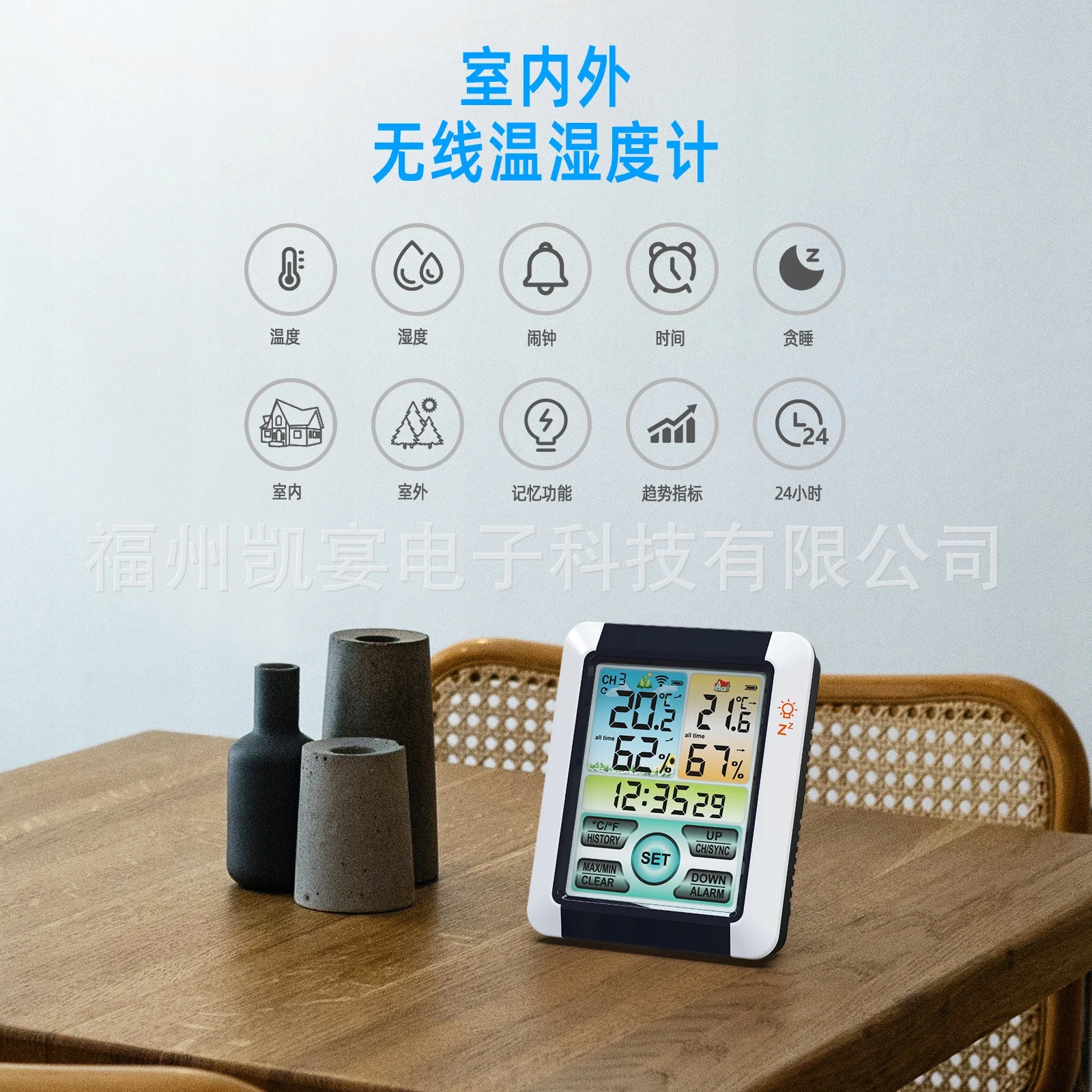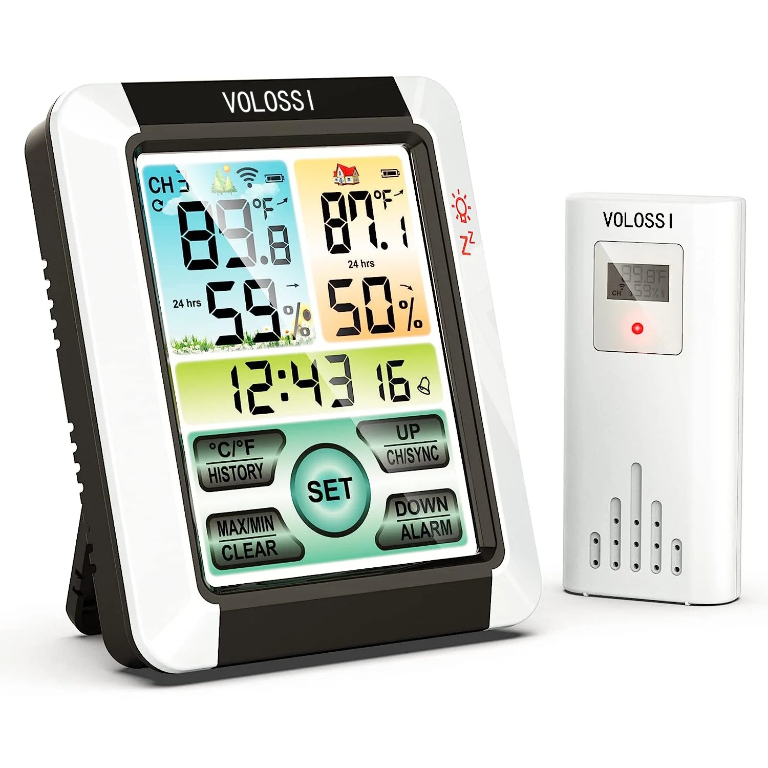1 Беспроводной набор температуры и влажности для использования внутри и снаружи красочные большие экраны с сенсорным экраном