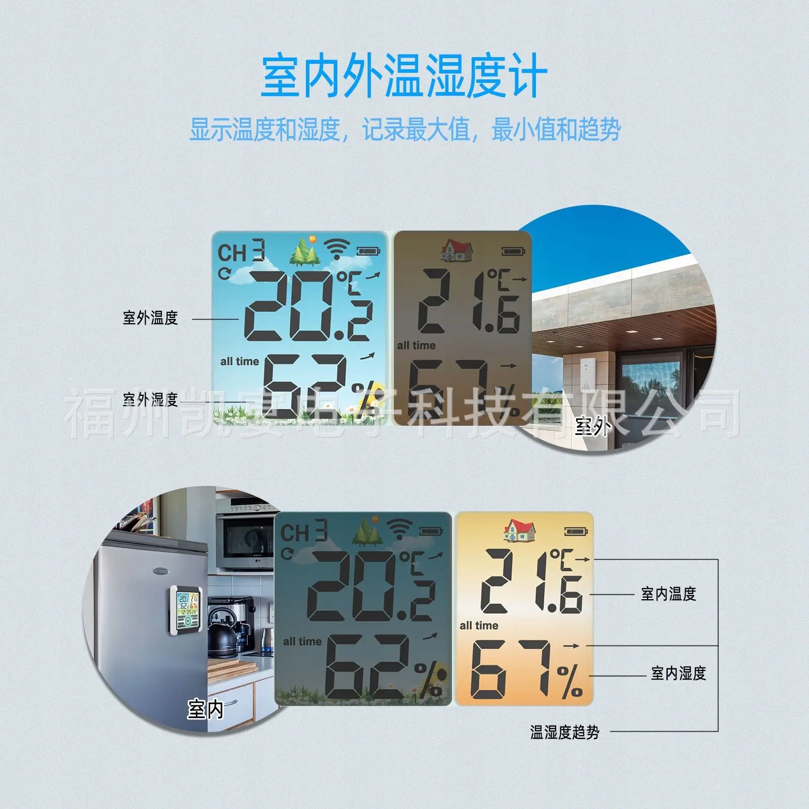 1 набор беспроводного измерителя и измерителя влажности внутри и снаружи