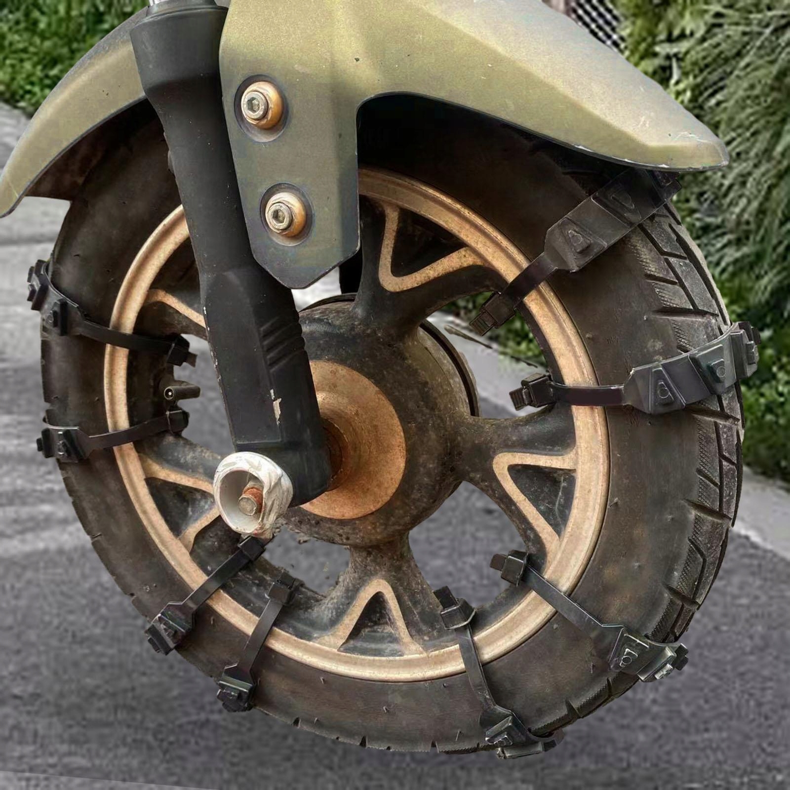 [простой в установке] Цепочки для снега и льда должны быть установлены на приводных колесах, установка быстрая и простая, а лифт не требуется. Портативные замки могут быть демонтированы и установлены по желанию, инструменты не требуются.