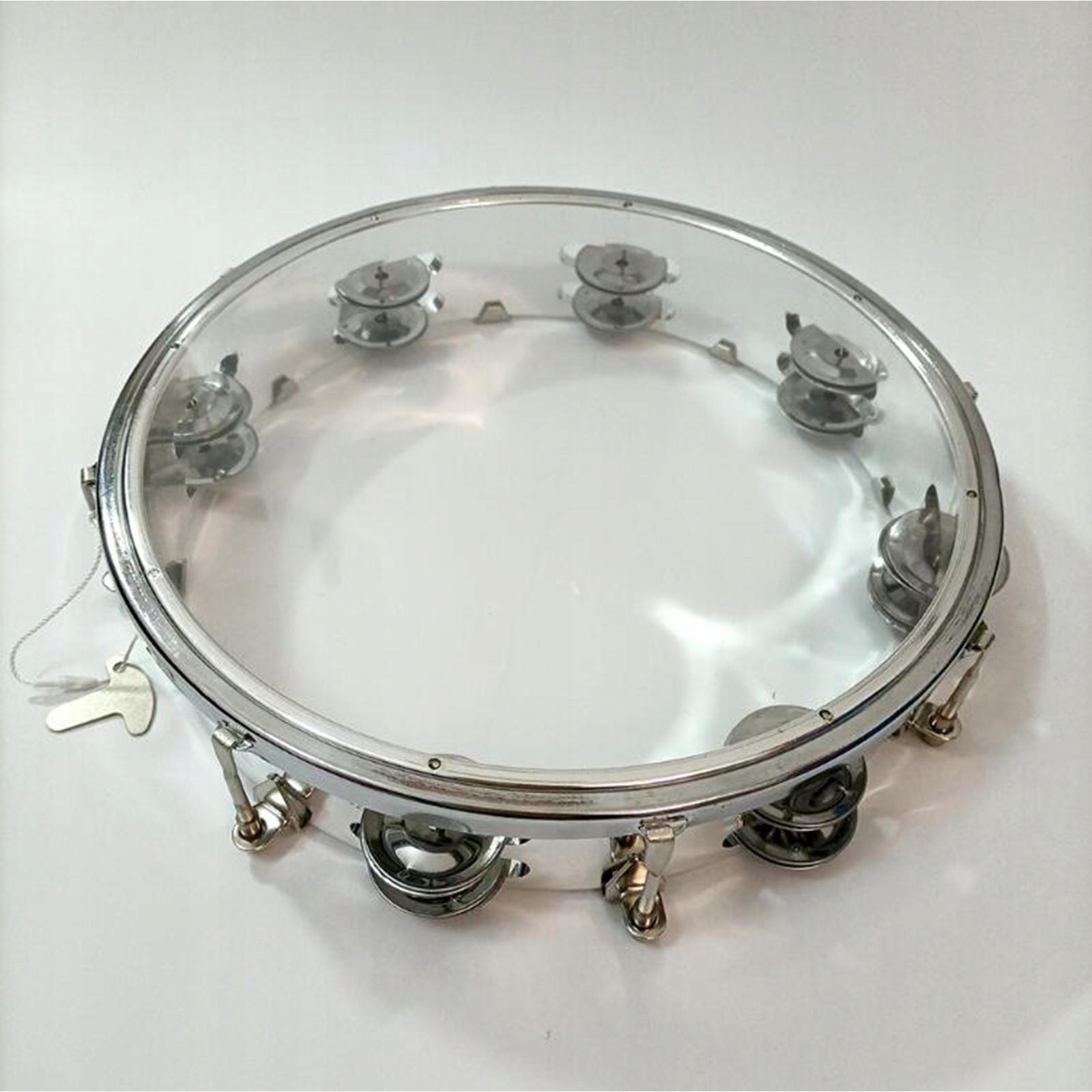 10-дюймовый бубен с металлическими колокольчиками. Музыкальные инструменты. Дети. Серебро
