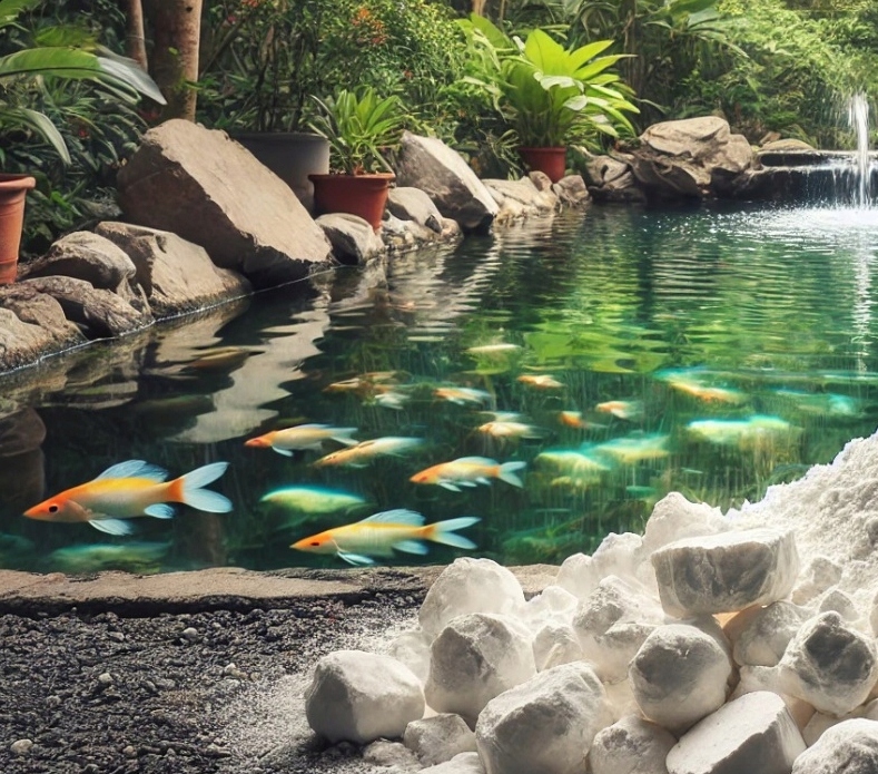 Медленное высвобождение кальция помогает поддерживать стабильный уровень pH в пруду, что полезно для здоровье рыб и водных растений. Избегаются быстрые изменения pH, которые могут быть стрессовыми для водных организмов.