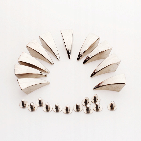 Шипы в форме пирамиды, изогнутые, как когти. Эти шпильки можно легко прикрепить с помощью отвертки к изделиям из кожи или одежде и легко снять. Модные заклепки идеально подходят для готических, панк- и байкерских образов.