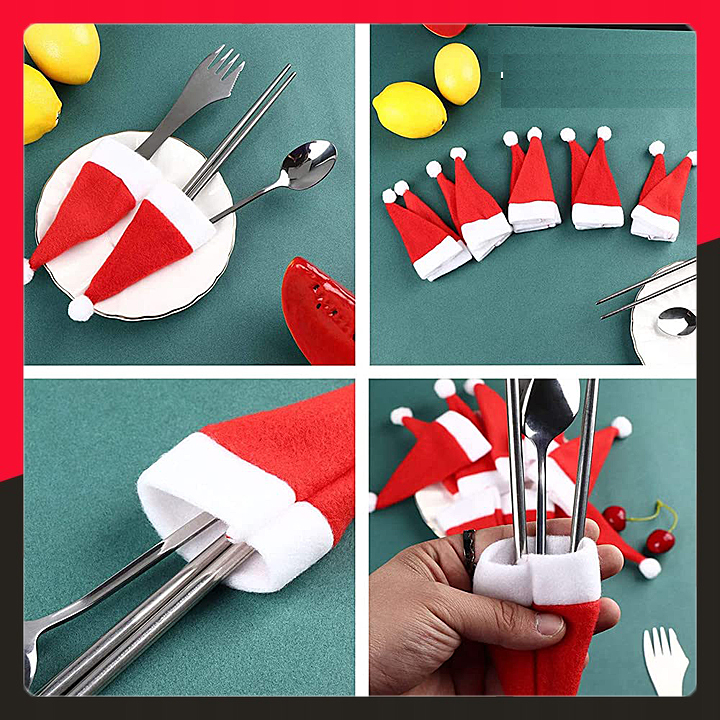 10 ШЛЯП САНТА ДЛЯ УКРАШЕНИЯ РОЖДЕСТВЕНСКОГО СТОЛА ДЛЯ БУТЫЛОК СТОЛОВЫХ ПРИБОРОВ