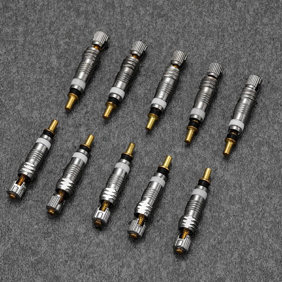 СЕРДЕЧНИК ВЕЛОСИПЕДНОГО КЛАПАНА 10 ШТ., ЛАТУНЬ, СЕРЕБРО, УПЛОТНЕНИЯ