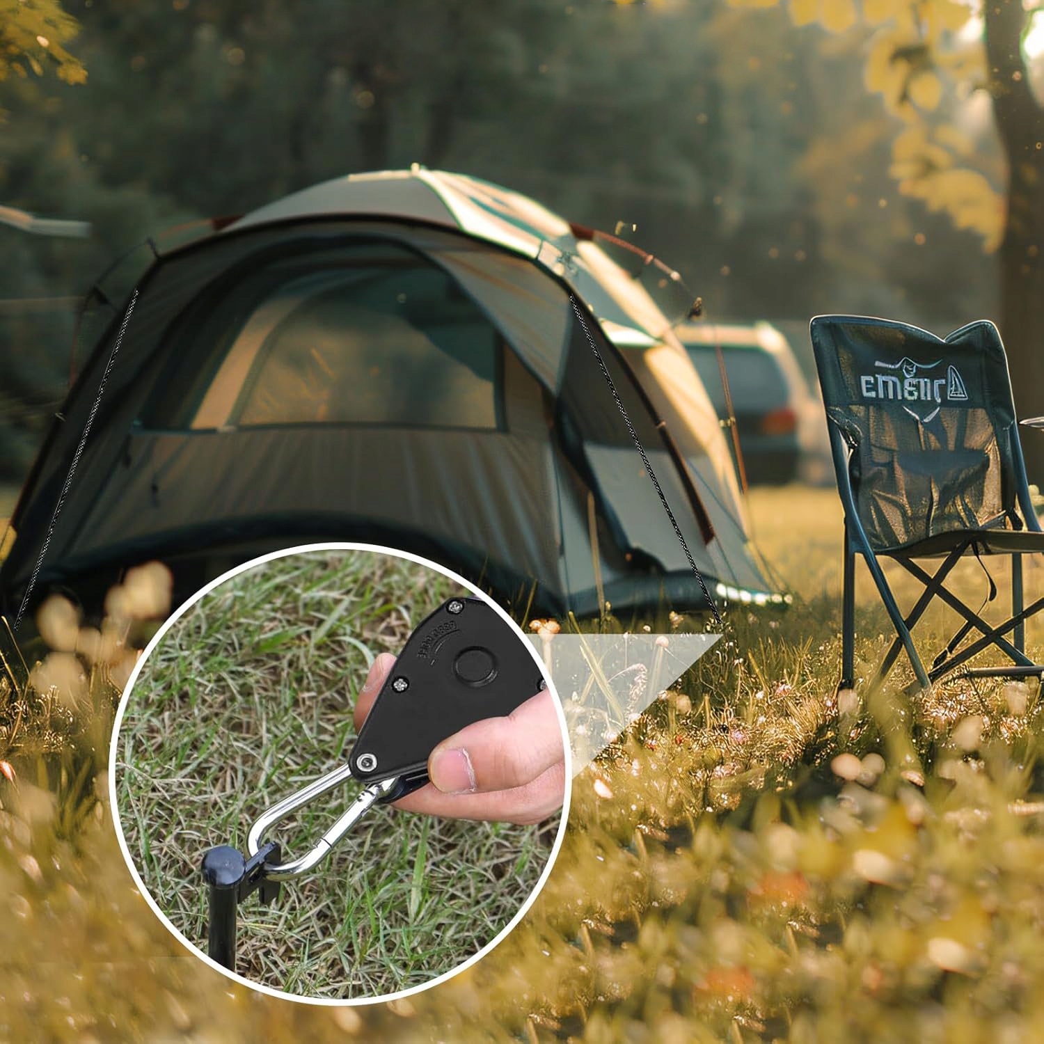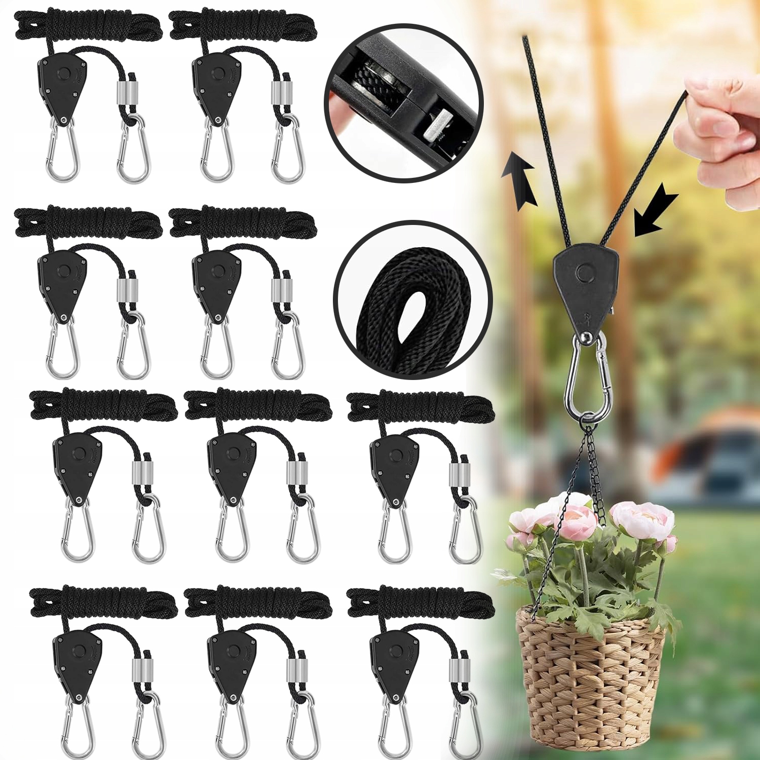 🏕 【Регулируемая】 защелка веревки с крючком имеет прочные металлические шестерни, которые позволяют быстро регулировать и блокировать веревку. Чтобы отрегулировать высоту подвесного объекта, просто потяните свободный конец веревки.