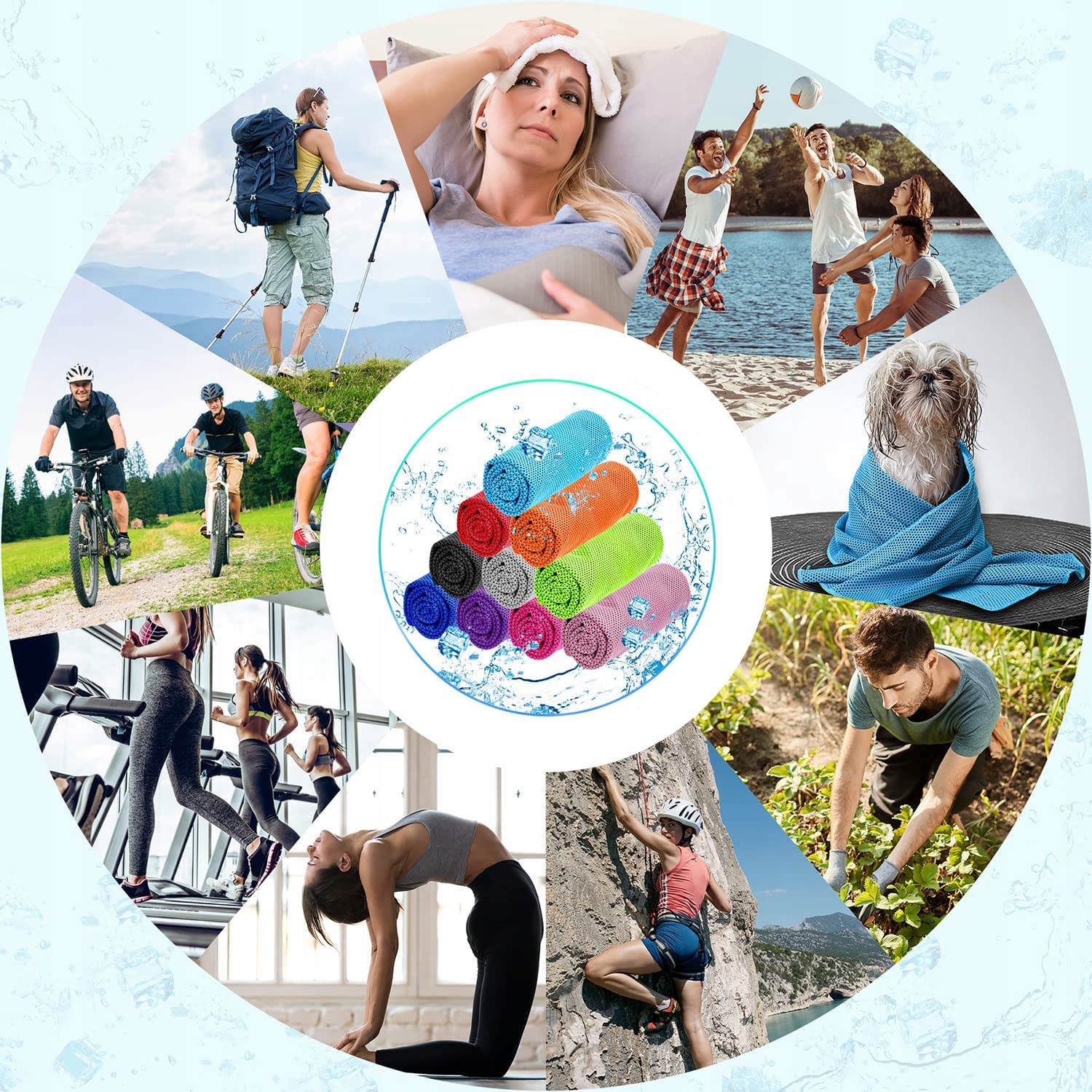 Идеально подходит для приливов, активного отдыха, занятий спортом в помещении, отдыха в жарких местах, лечения лихорадки или головной боли, теплового удара. профилактика, защита от солнца, охлаждение и поглощение пота в жаркие летние дни. Охлаждающую ткань может использовать каждый, даже домашние животные.