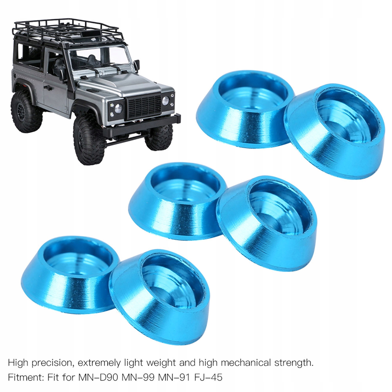 1. Качественный алюминиевый сплав, поверхность покрыта красивыми цветами, что очень круто. 2. Прецизионная обработка на станке с ЧПУ, высокая точность, чрезвычайно легкий вес и высокая механическая прочность. 3. Совершенная технология производства, хорошие запасные части, используемые для ремонта моделей радиоуправляемых автомобилей. 4. Идеально подходит к модели автомобиля MN
