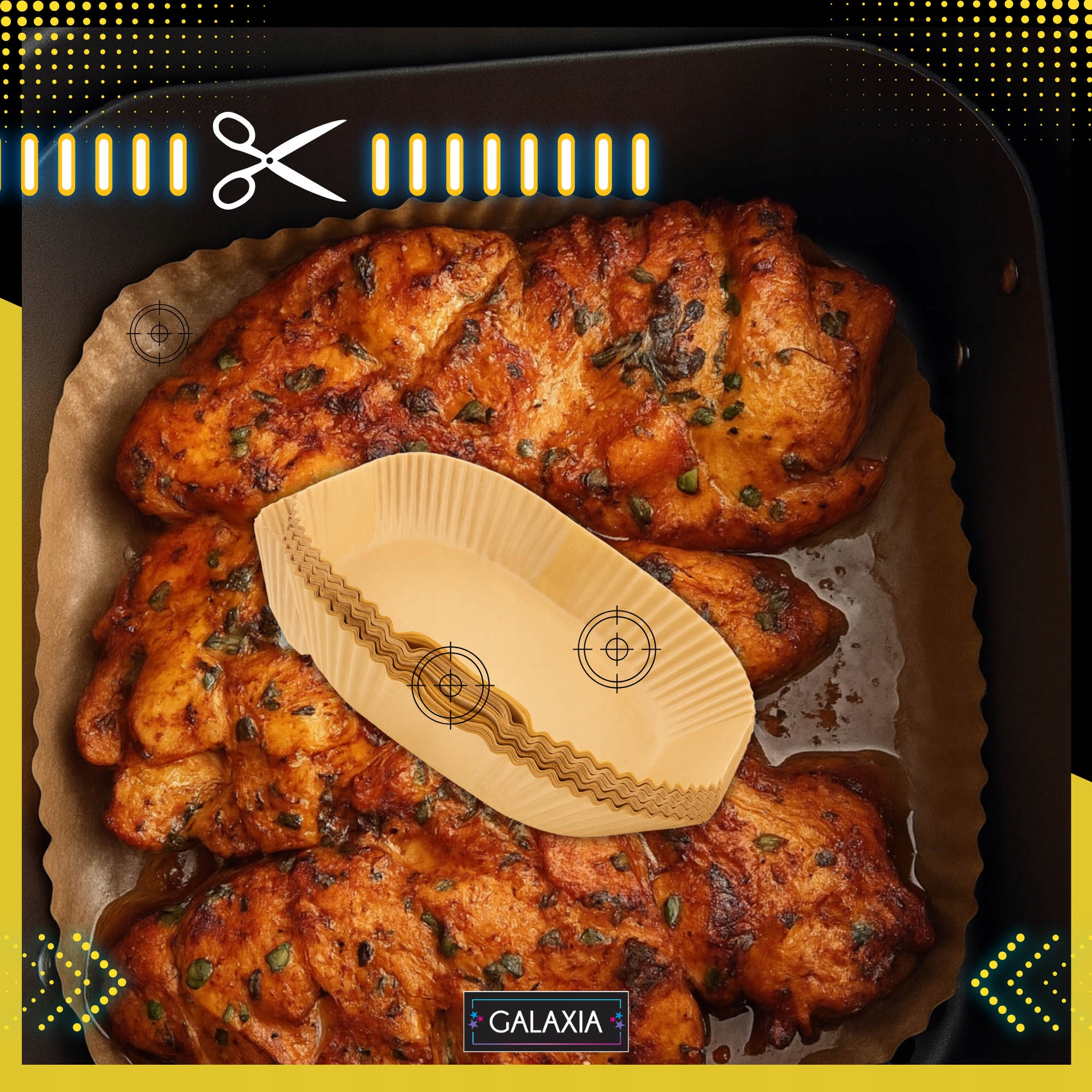 - ✔ 100 листов бумаги для воздушного фритюрного Galaxia® 20x20 см - ваш новый защитный щит против жира, сжигания и очистки. Вы ставите, выпекаете, выбрасываете - ноль мытье, максимальный комфорт. Готов к любой кулинарной миссии!