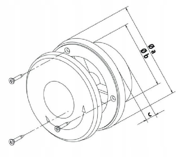 Диффузор обычно устанавливается во внутренний вентиляционный канал в качестве завершения установки на подвесном потолке. Установка этого анемостата чрезвычайно проста благодаря трем дюбелям и винтам, входящим в комплект.