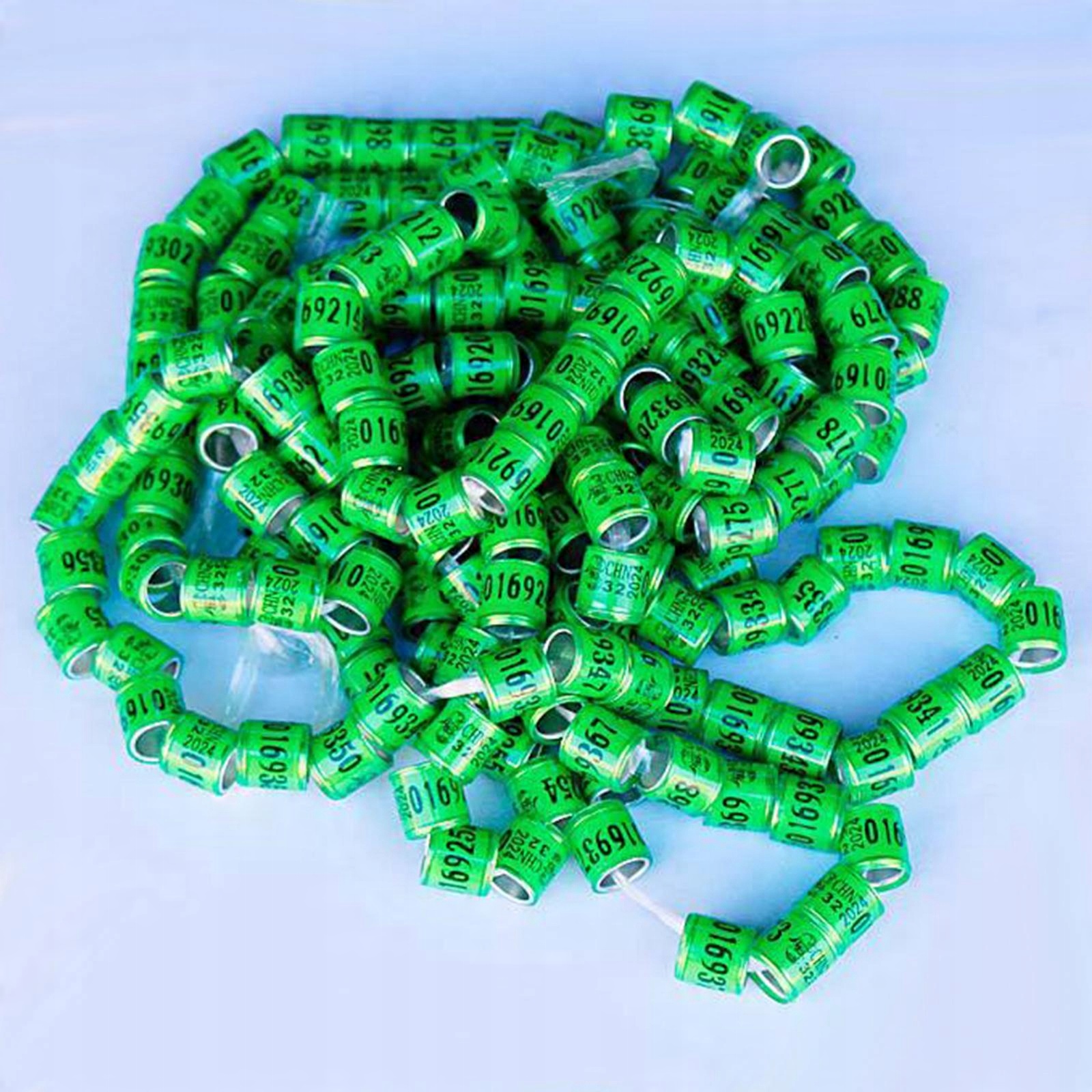 100 алюмінієвих ремінців для ніг, каблучки для ніжок голуба, міцного світло-зеленого кольору