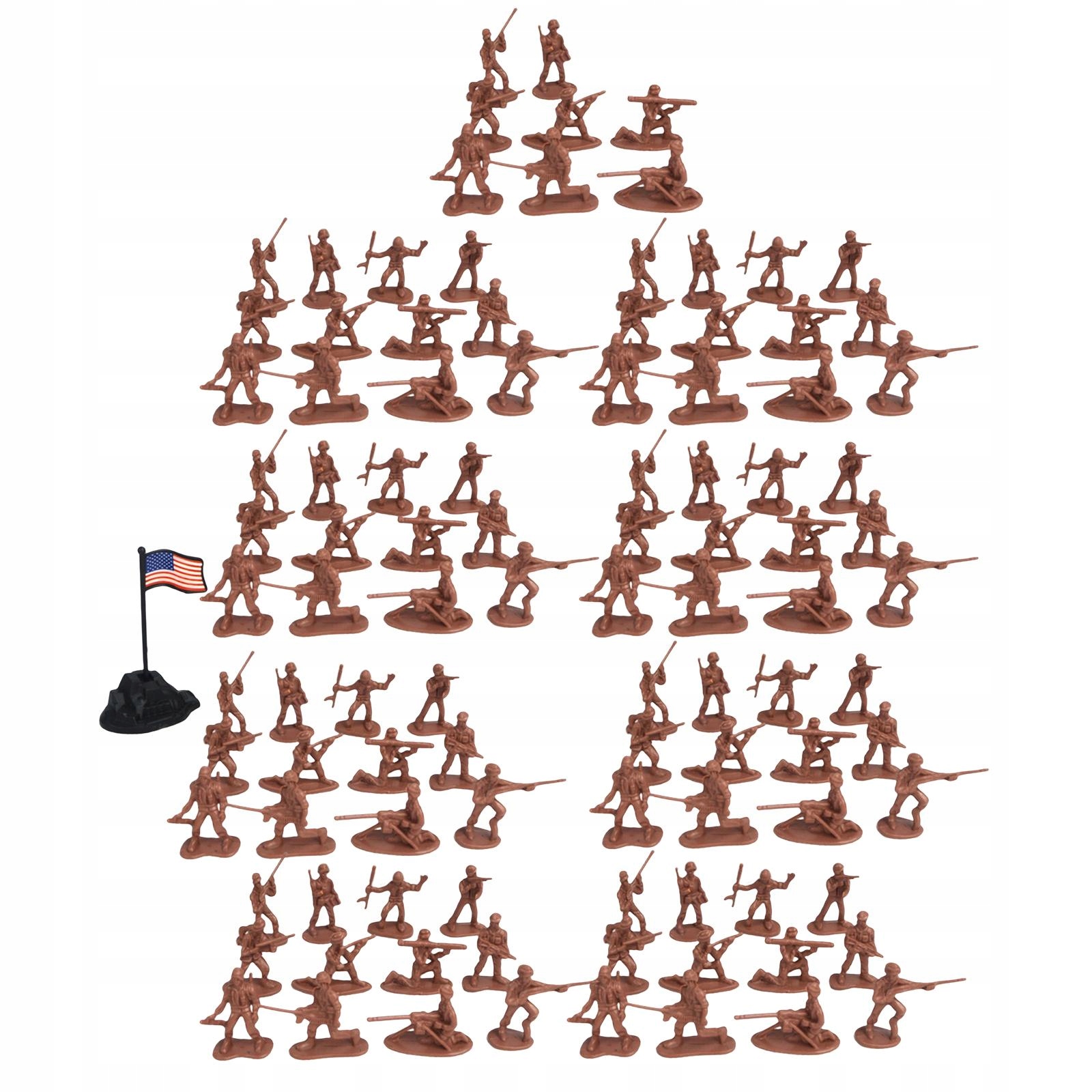 Пакет включает в себя: 100 фигурков солдат, 12 различных положений и удержания рук и 1 флаг. Мелкие детали, хороший баланс.