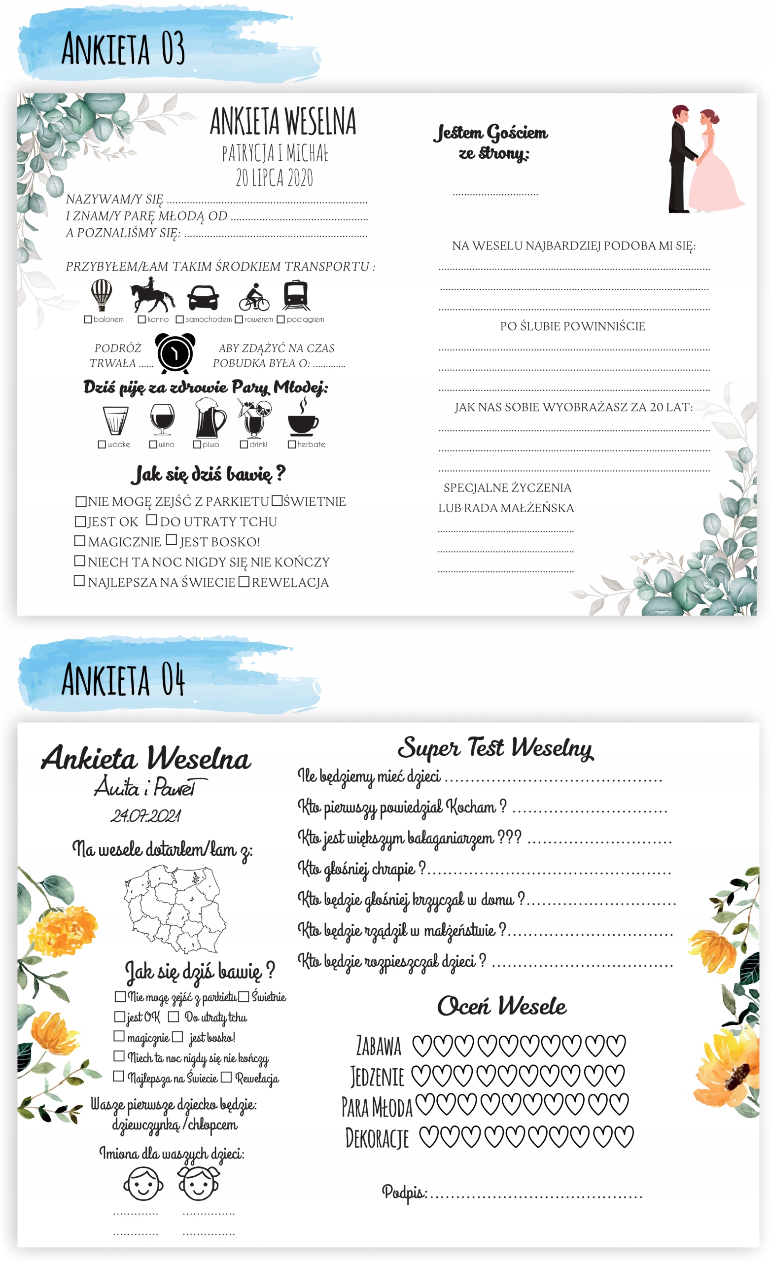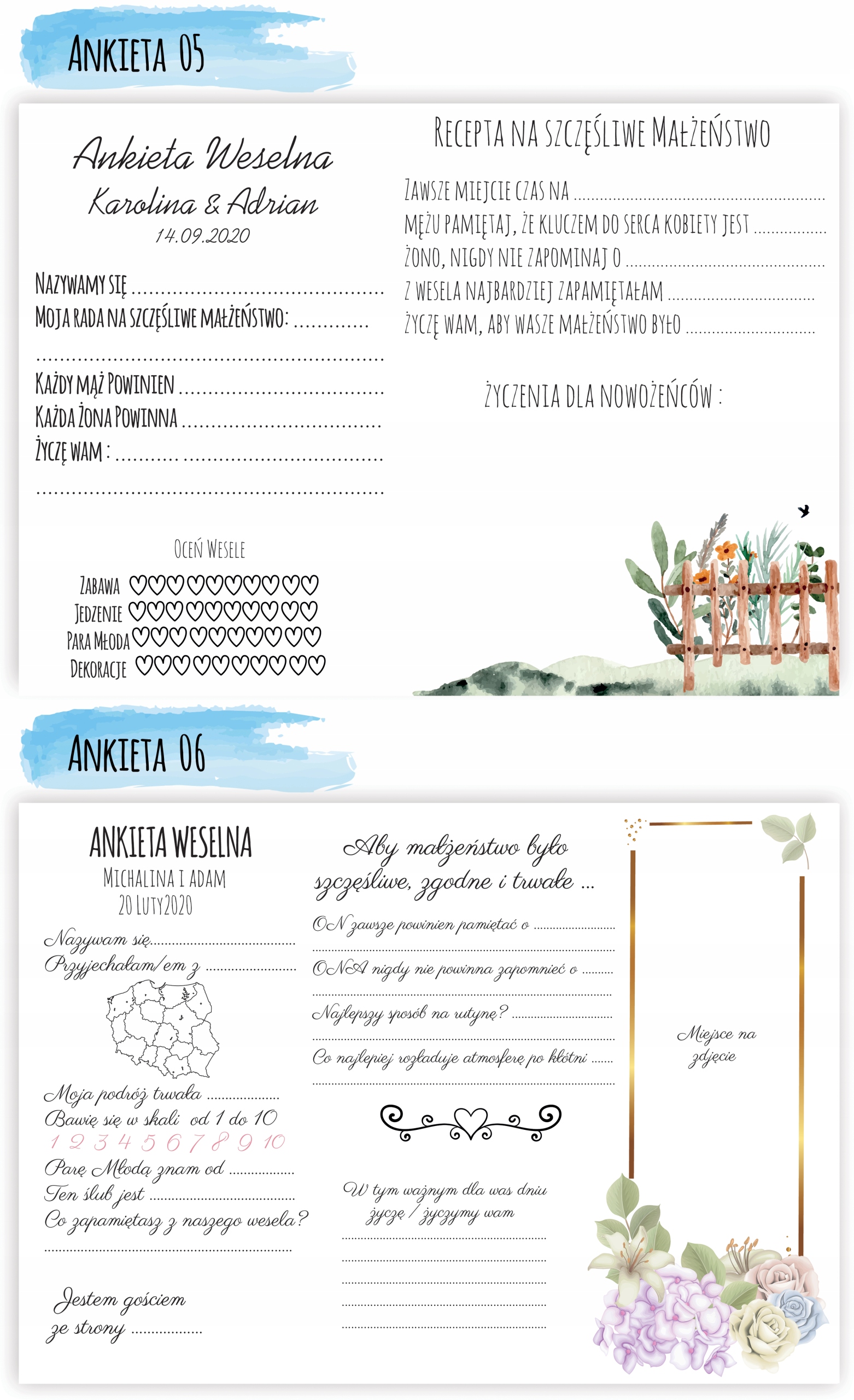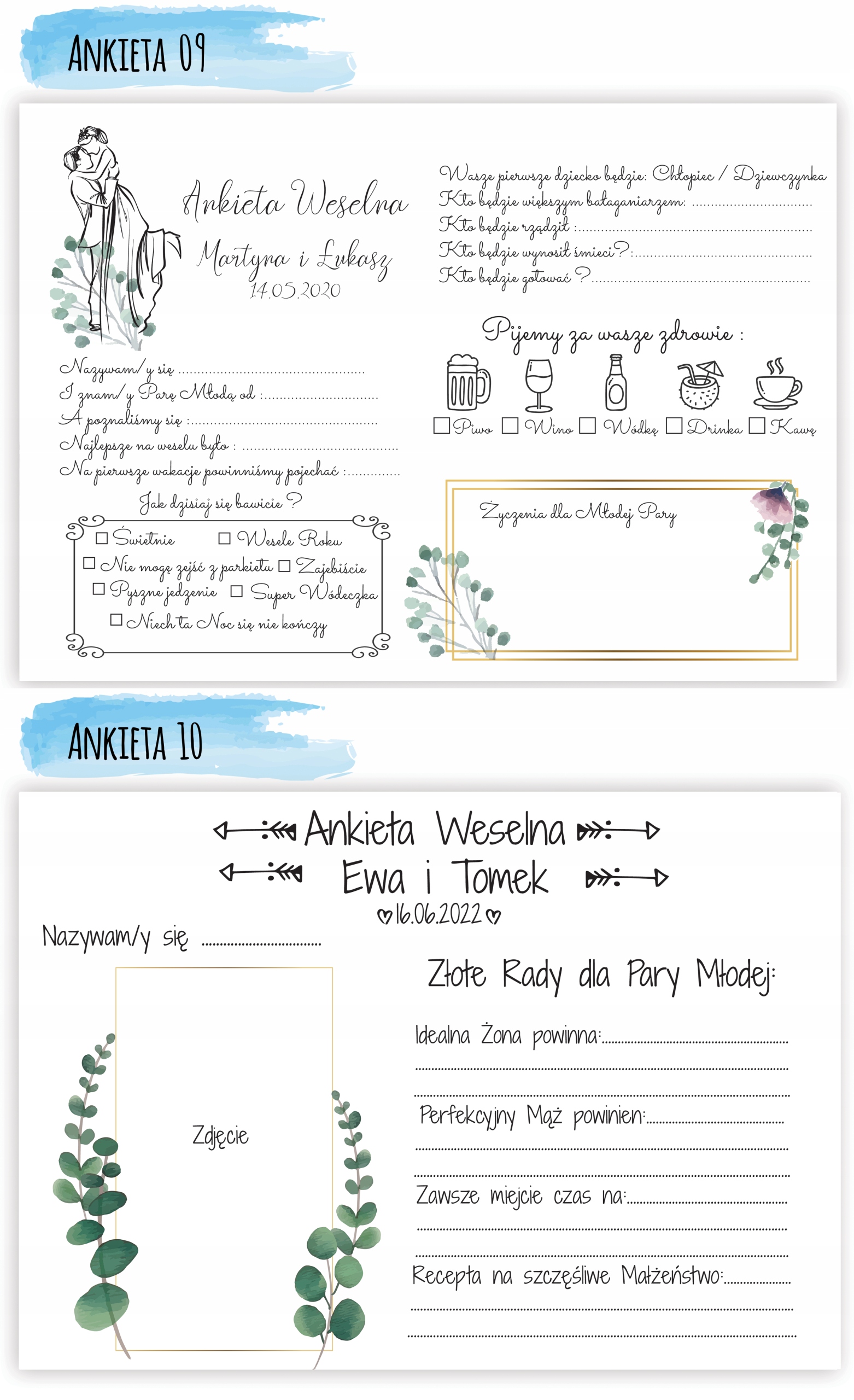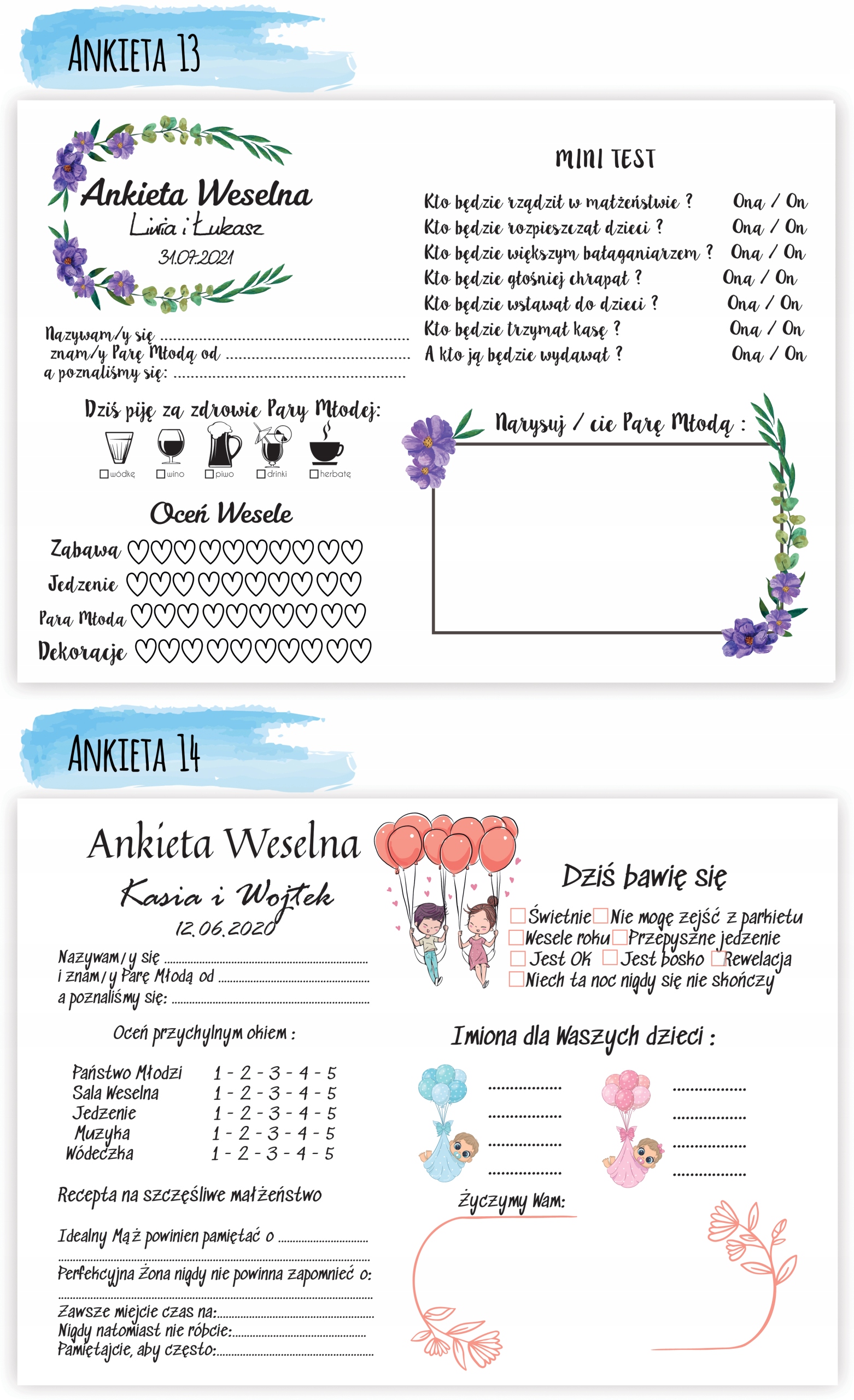 У нас есть 14 вариантов анкет для гостевых книг.