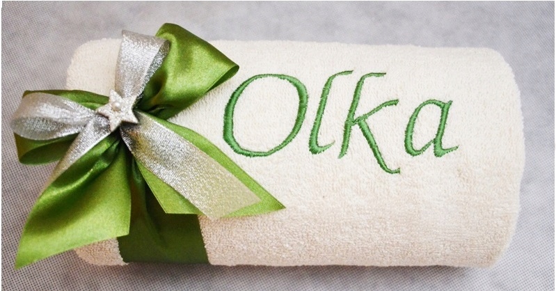 В стоимость полотенца входит вышивка имени или отдельного слова, например, Мама, Папа, Бабушка и т. д. Вышивка выполняется посередине верха полотенца. Надписи крупные и четкие, площадь вышивки 20х15 см. Целевой размер букв зависит от длины слов.