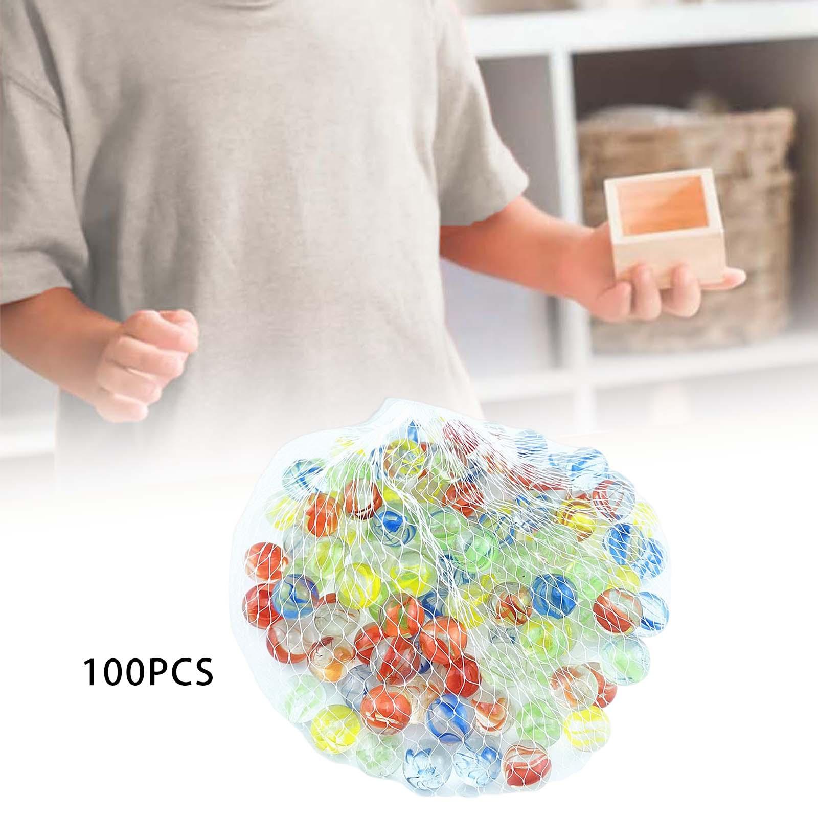 100 стеклянных шариков: в наш набор входят 100 красивых стеклянных шариков номиналом 0 — традиционная игра с шариками, которая улучшает зрительно-моторную координацию детей и помогает им развивать важные навыки. Детский набор шариков также подходит для использования в помещении и на открытом воздухе