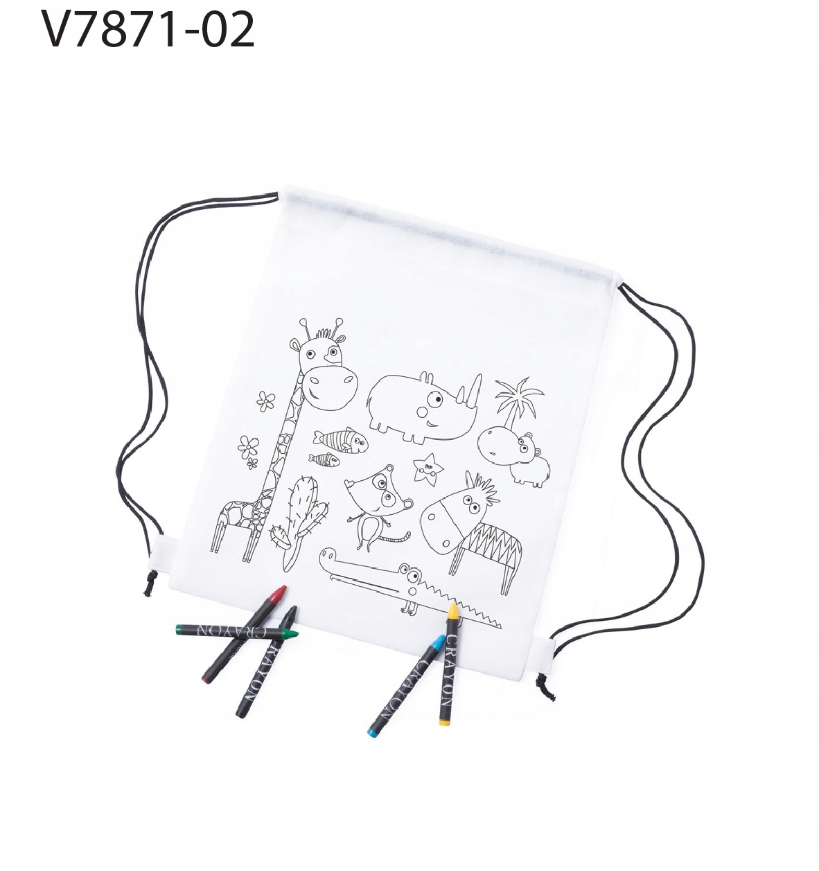 100 х Сумочка с веревочкой для раскрашивания, мелки с ВАШИМ ПРИНТОМ