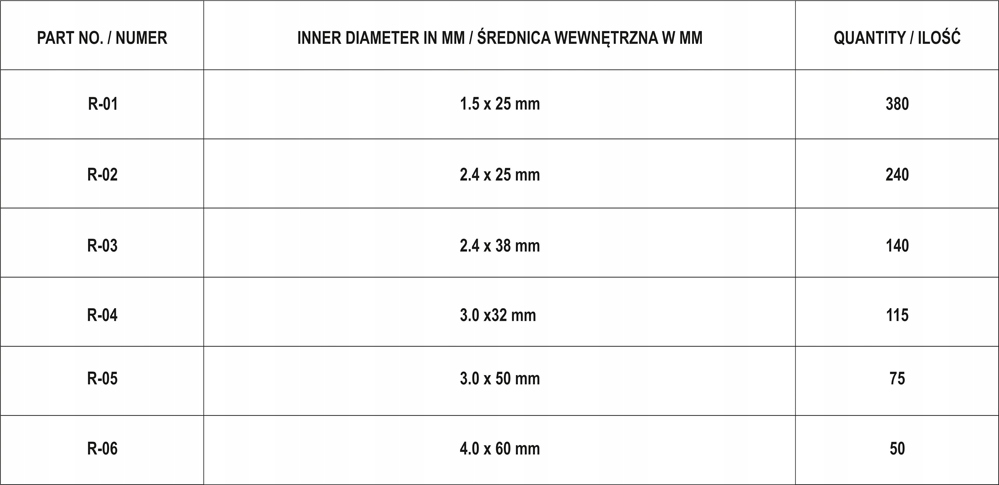1000 ШТИФТІВ ПРЯМІ ШТИРКИ МІЖ РОЗМІРІВ YT-06885