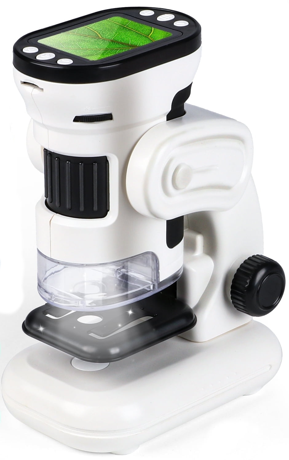 Цифровой микроскоп оснащен 2-дюймовым HD-экраном с регулируемой яркостью, обеспечивающим кристально чистое изображение. Мощные светодиоды гарантируют превосходное освещение, обеспечивая точное наблюдение даже при слабом освещении. Функция фотосъемка/запись видео позволяет сохранять все ваши наблюдения. Микроскоп можно использовать 3 способами - на регулируемой по высоте подставке, штативе или в ручном режиме. В ручном режиме просто поместите микроскоп на любую поверхность и сразу получите увеличенное изображение!