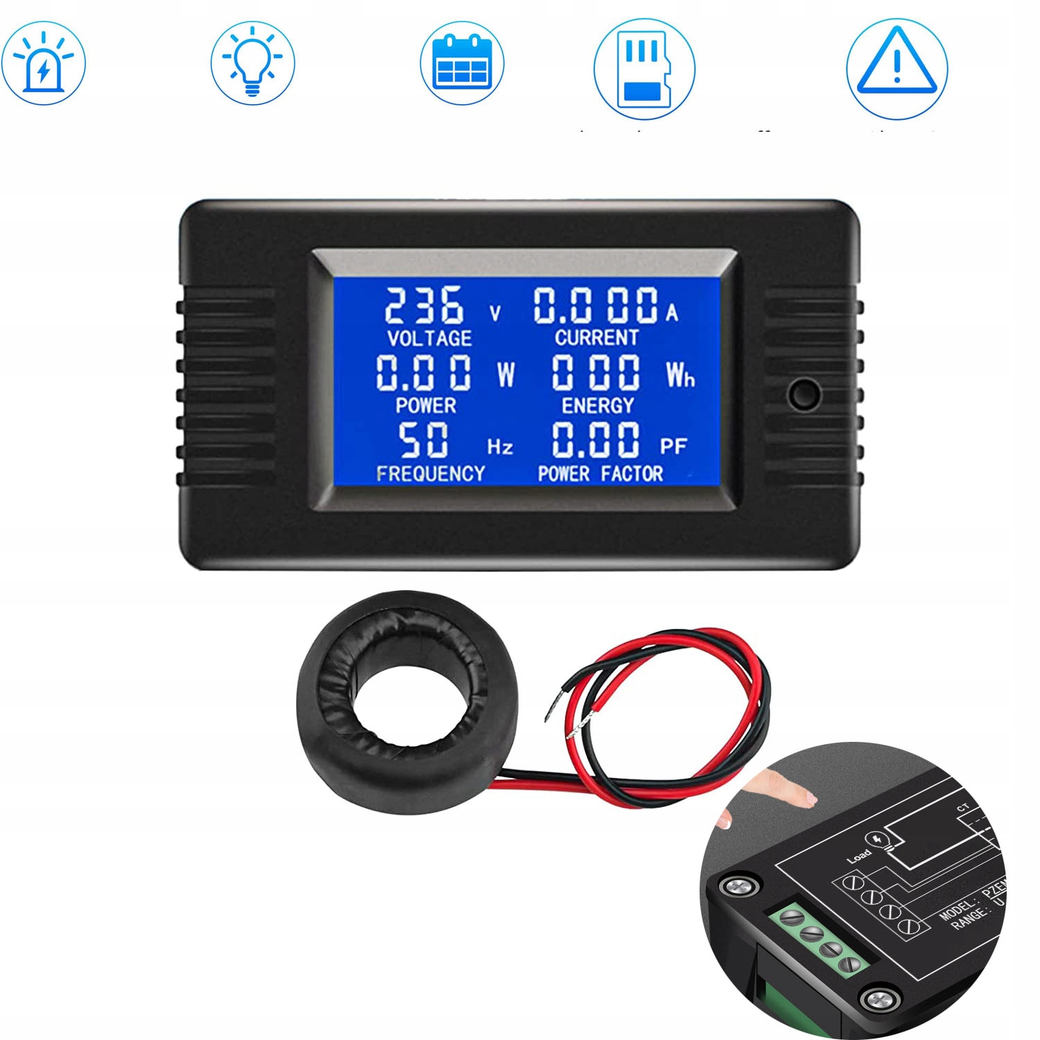 1. 6 Тестовые функции-ac mictuning в основном используется для измерения напряжения (80-260 В), тока (0-100A), мощности (0-22000 Вт), энергии (0-999KWH), частоты (45-65 Гц), коэффициенты мощности (0-1PF).