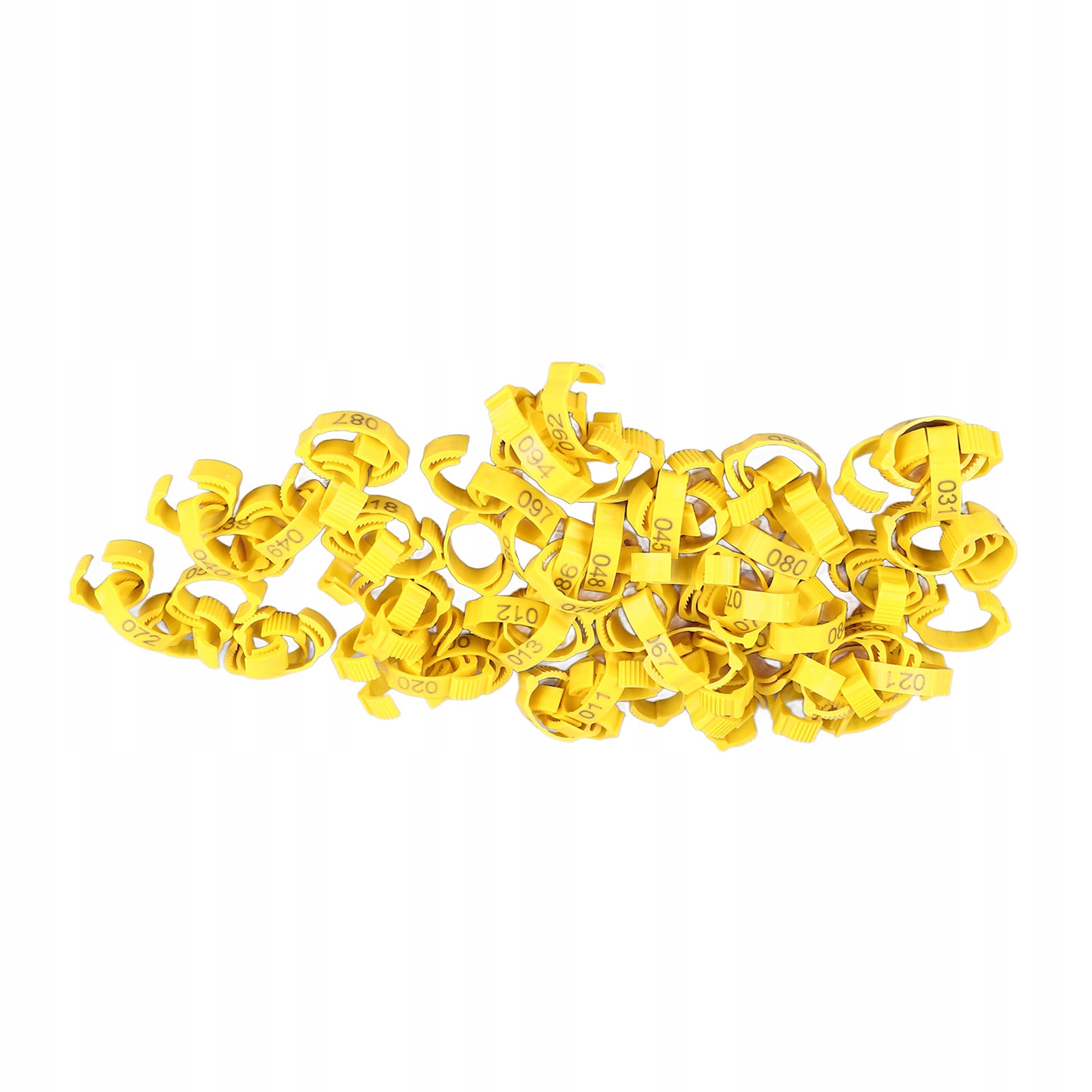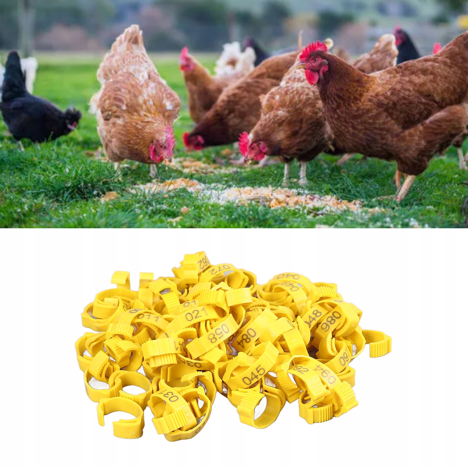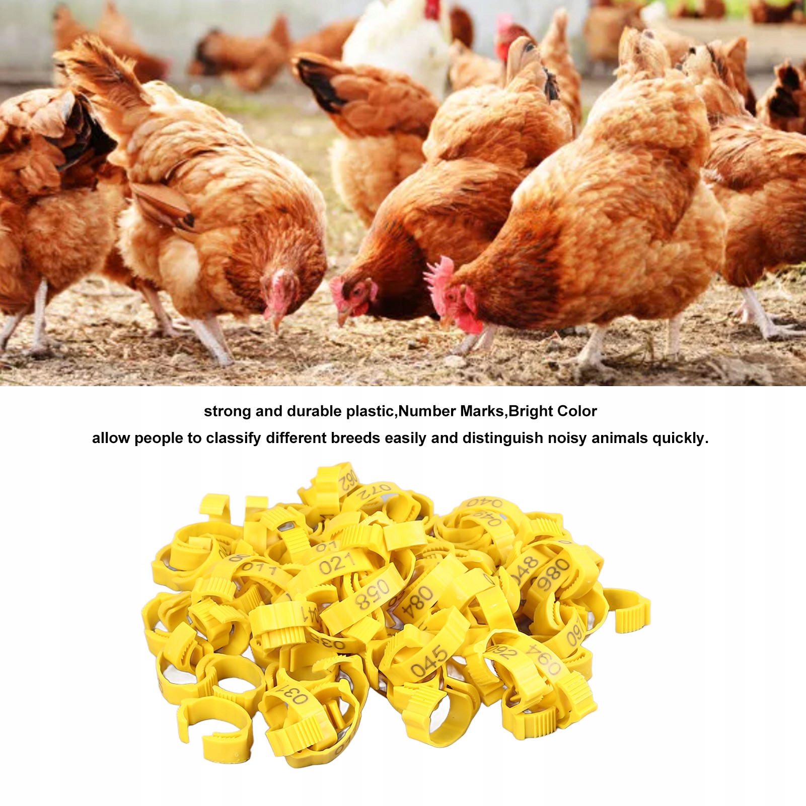 5. 100 шт.: Вы получите 100 шт. зажимов для куриных колец, которые пригодятся для разделения разных пород, маркировки подозрительных петухов и помогут вам управлять птицей и выращивать ее.
