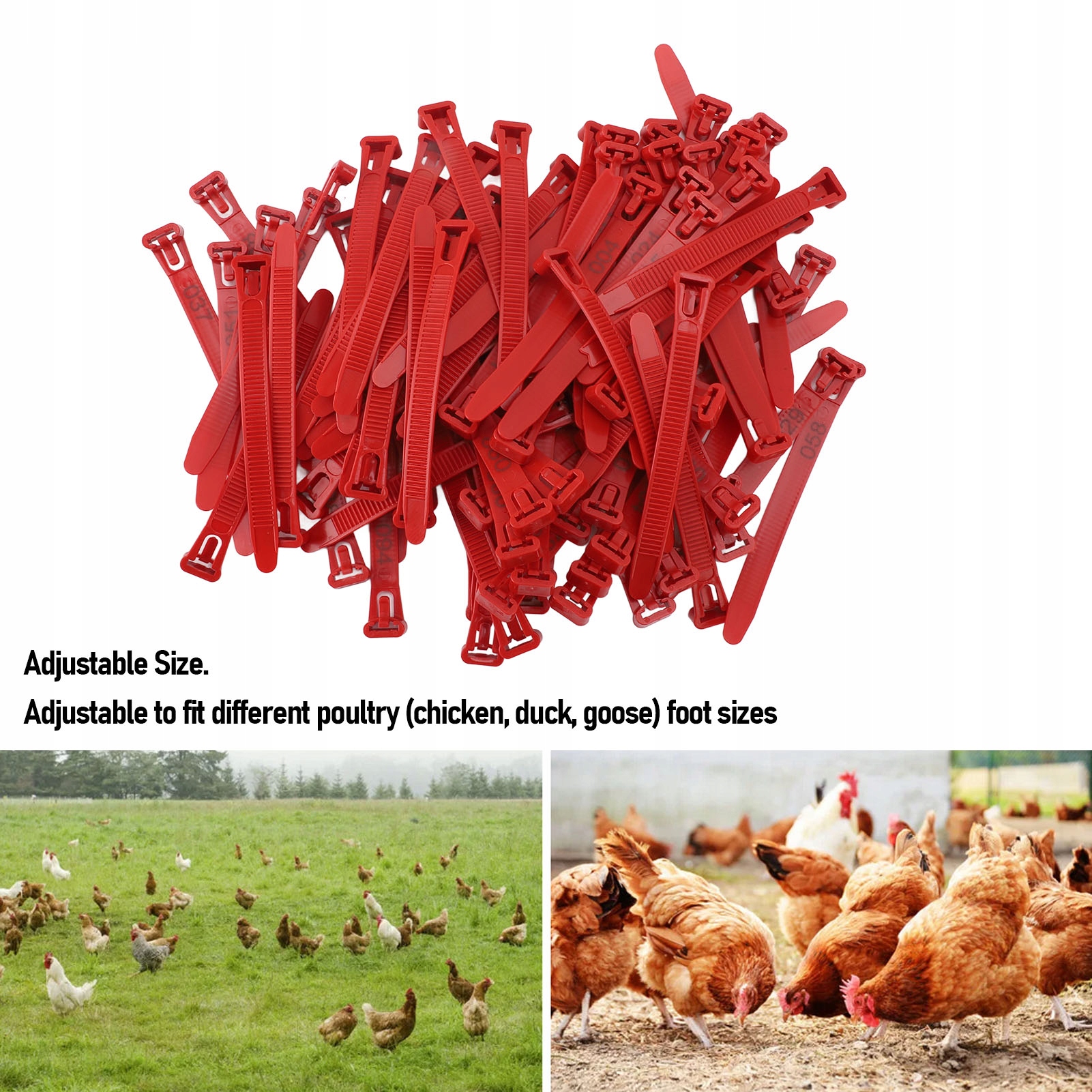 3. Регулируемые: разработано с гибкостью, эти идентификационные кольца курицы адаптируются к размеру ноги различной птицы, такой как цыплята, утки и гусей.