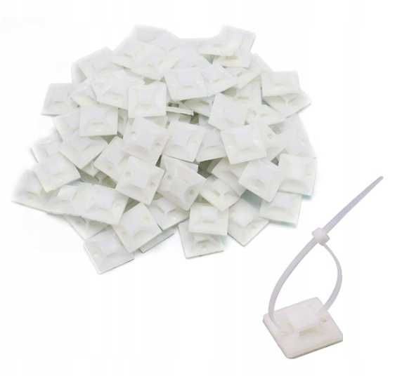 100x САМОКЛЕЮЧИЙ ТРИМАЧ КАБЕЛЮ ГАЧОК 25X25 + ХВОСТИКИ 3,6X200 БІЛИЙ