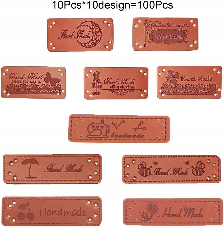 100 вышитых кожаных нашивок для одежды - ПУ кожа с надписью «Ручная работа»
