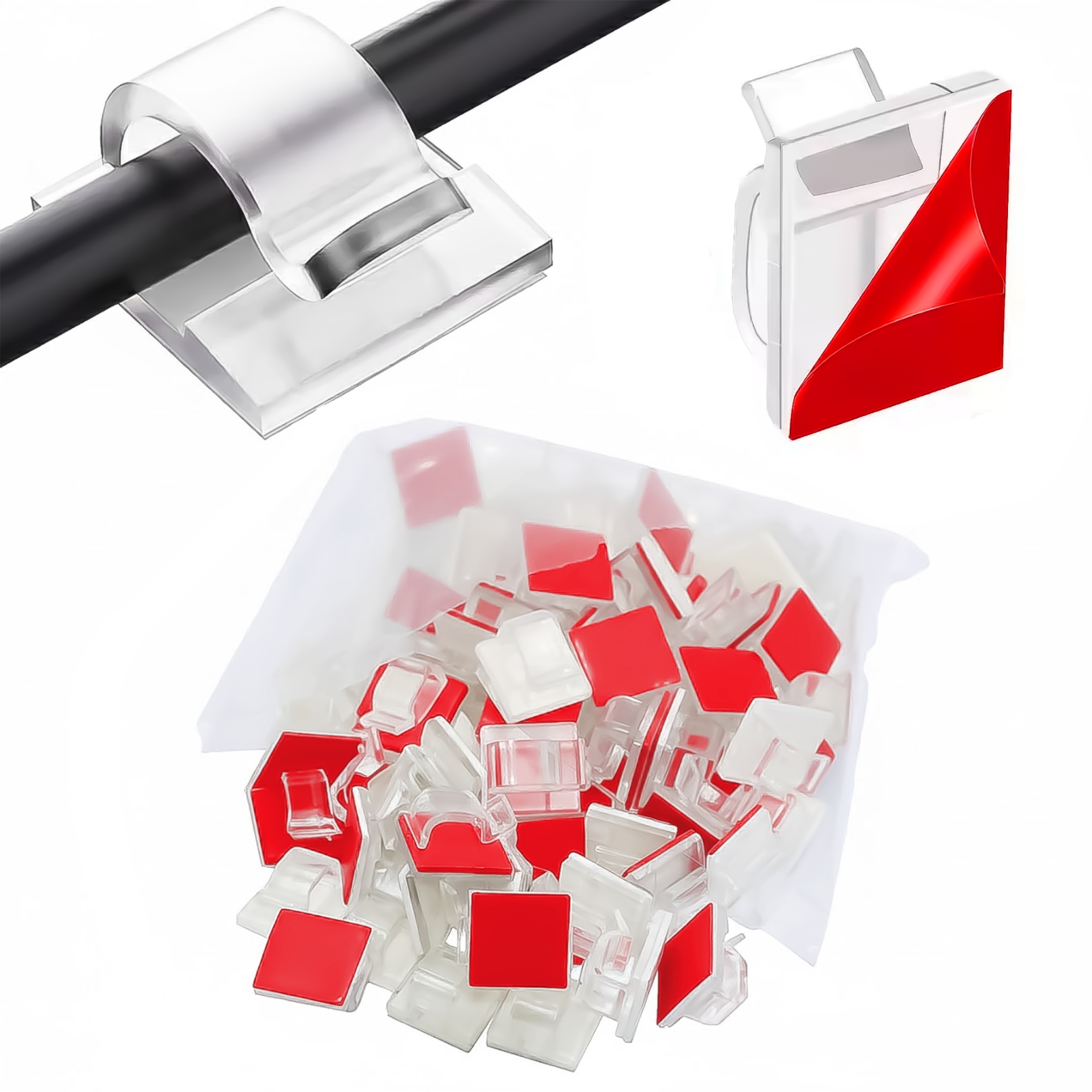 100x ДЕРЖАТЕЛЬ КАБЕЛЬНОГО ОРГАНАЙЗЕРА, САМОКЛЕЯЩИЙСЯ, ПРОЗРАЧНЫЙ