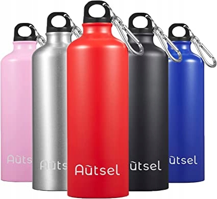 Autsel Сверхлегкая алюминиевая спортивная бутылка для воды с карабином Многоразовая алюминиевая бутылка для воды Водонепроницаемая