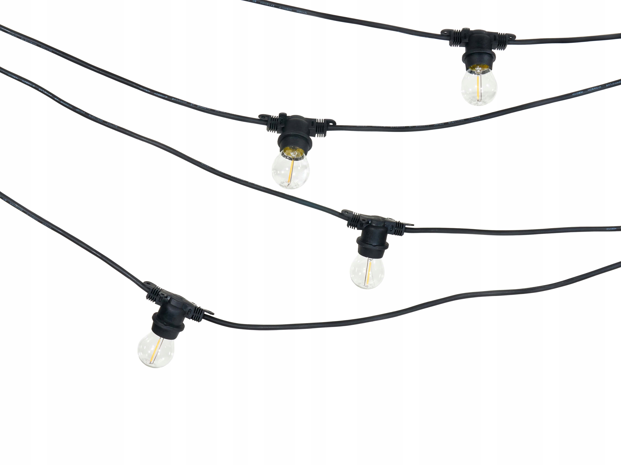 Расстояние между цоколями Е27 – 0,5. м. Гирлянда отличается возможностью расширения серии до максимальной мощности 2300Вт, что открывает большие возможности в компоновке изделия. Гирлянды адаптированы к энерголампам классов А++ – Е, что еще больше увеличивает возможности обустройства с использованием альтернативных источников света. Они имеют уровень герметичности IP44, поэтому вы можете быть уверены, что изделие будет безопасно работать в изменяющихся внешних условиях.