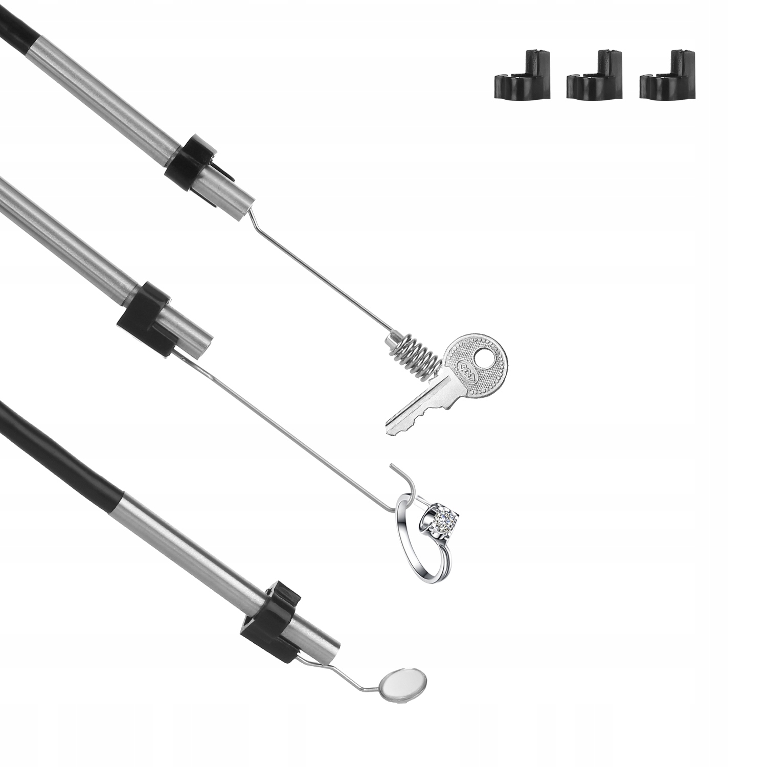- В комплект входят 3 дополнительных насадки(магнит, крючок, зеркало )